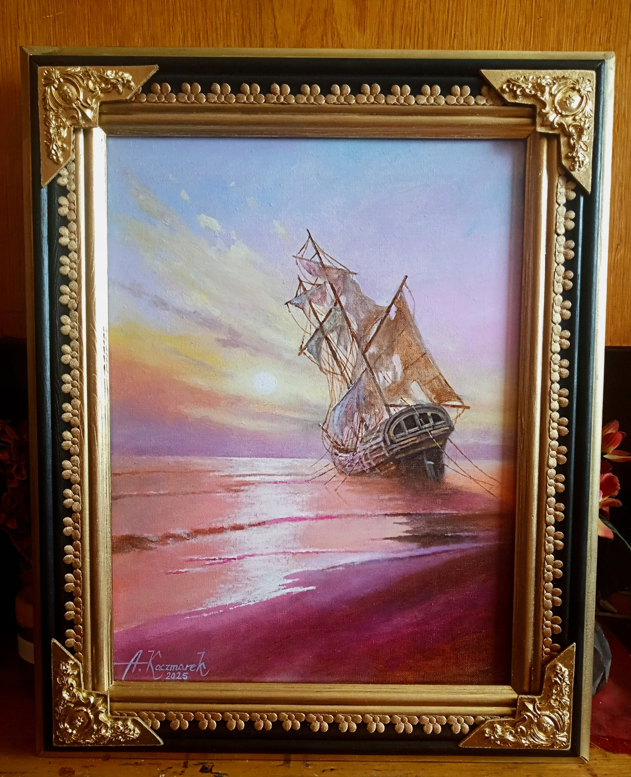 ŚWIT NAD BRZEGIEM MORZA- OLEJ,PŁÓTNO , 50x40
