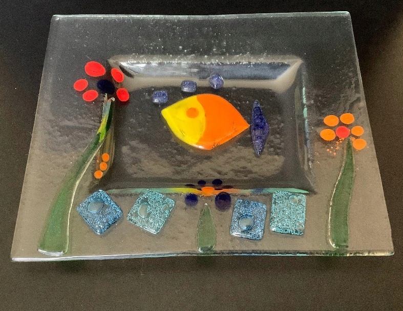 WITRZAŻ TALERZYK DEKORACYJNY SZKŁO WARSTWOWE LATA 80