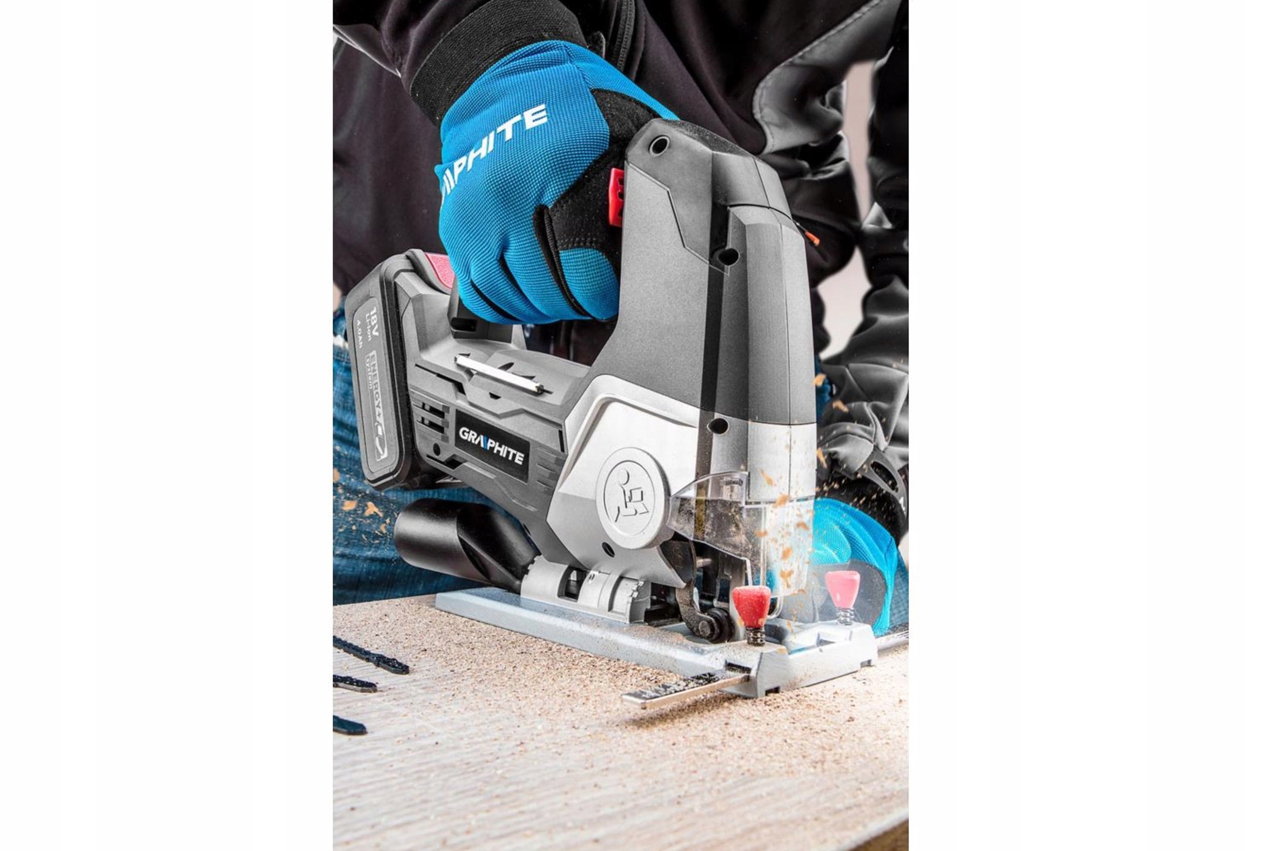 4 Пристрій призначений для точного та швидкого різання деревини та металу, з максимальною товщиною 80 мм та 10 мм відповідно. Система регулювання обертання дозволяє працювати зі швидкістю від 0 до 2400 ударів в хвилину . Джигсова має алюмінієву стопу з регулюванням кута нахилу в діапазоні від 0 ° до 45 ° вправо та ліворуч . Він має 3-ступінчастий функціональний регулятор ji обсягу руху, що розгойдується, що дозволяє збільшити швидкість різання у вибраних матеріалах. Електронний інструмент оснащений системою розряду без листя та світлодіодним діодом , висвітлюючи робоче місце. Лезо джигсови (25 мм інсульту) було закріплено прозорою кришкою, виготовленим з міцного полікарбонату. Робочий власник пристрою був адаптований для роботи з type t . Ручка оснащена зручним перемикачем із замком, що захищає від випадкового запуску, а місце зчеплення було покрите матеріалом, що не має слизу, для більшого комфорту та безпеки. Для поліпшення видалення пилу з поверхні заготовки джигсова була оснащена системою видування пилу та дренажу. У комплекті з джигсовою є паралельний посібник. З можливістю зарядки без ризику втрати потужності. Оснащений індикатором заряду та електронною системою управління температурою та потоком струму під час зарядки та вивантаження. Акумулятор збільшення ємності для найвибагливіших користувачів, забезпечуючи ще довший робочий час від одного заряду. Можливість вибору будь -якої кількості акумуляторів з різною ємністю та зарядним пристроєм. Завдяки цьому рішення, існує можливість будь -якої конфігурації набору продуктів та вибору оптимальної кількості необхідних батарей. Паралельне Шестикутній ключ