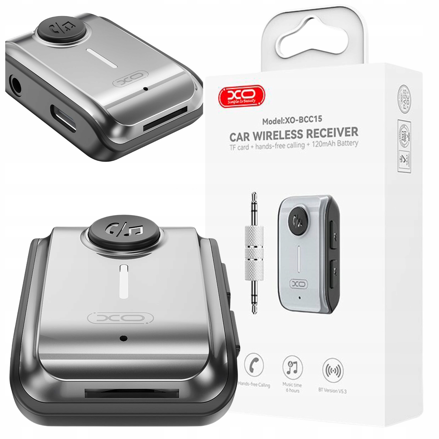 XO BCC15 Bluetooth MP3 FM-передавач сріблясто-чорний