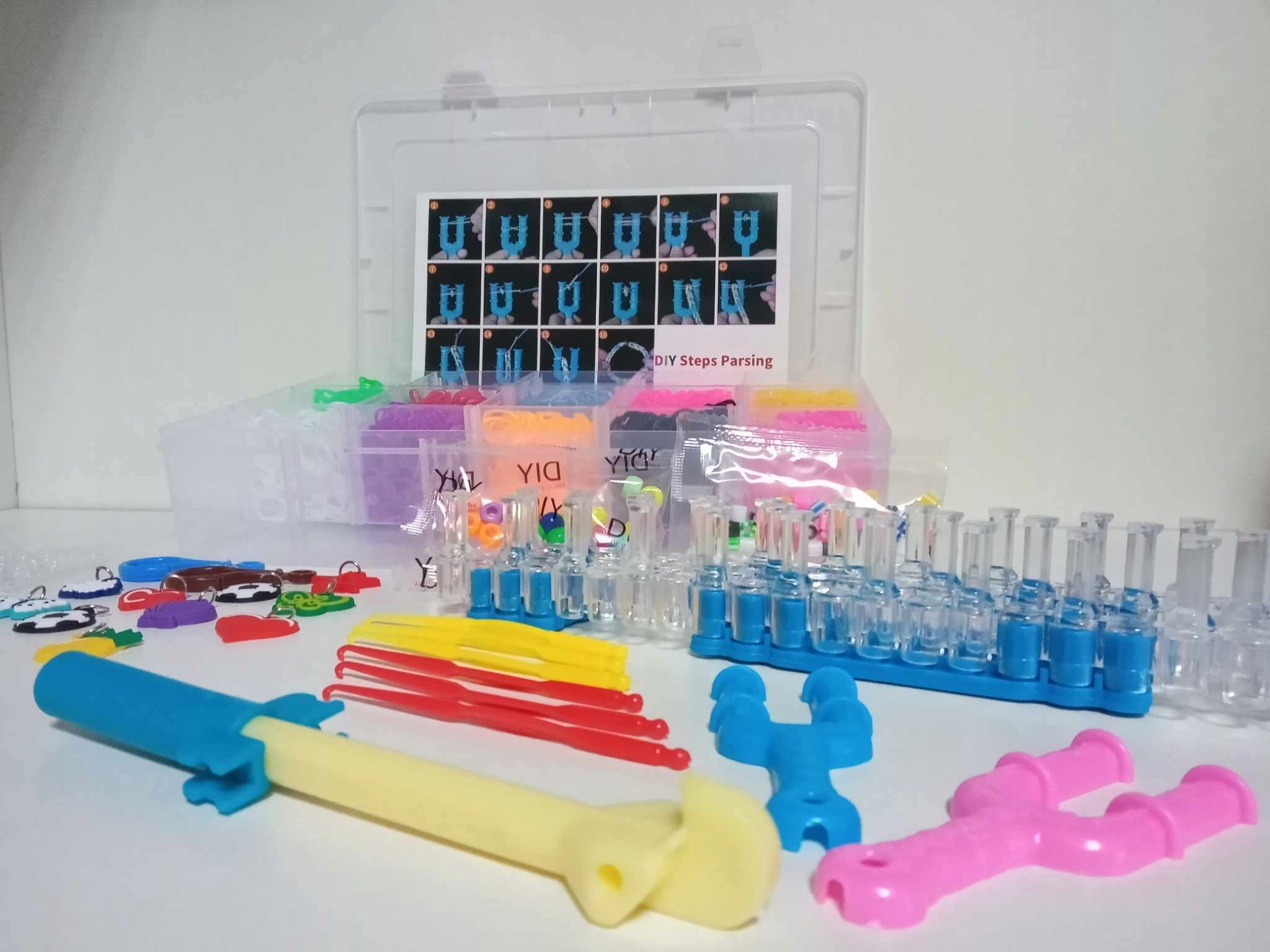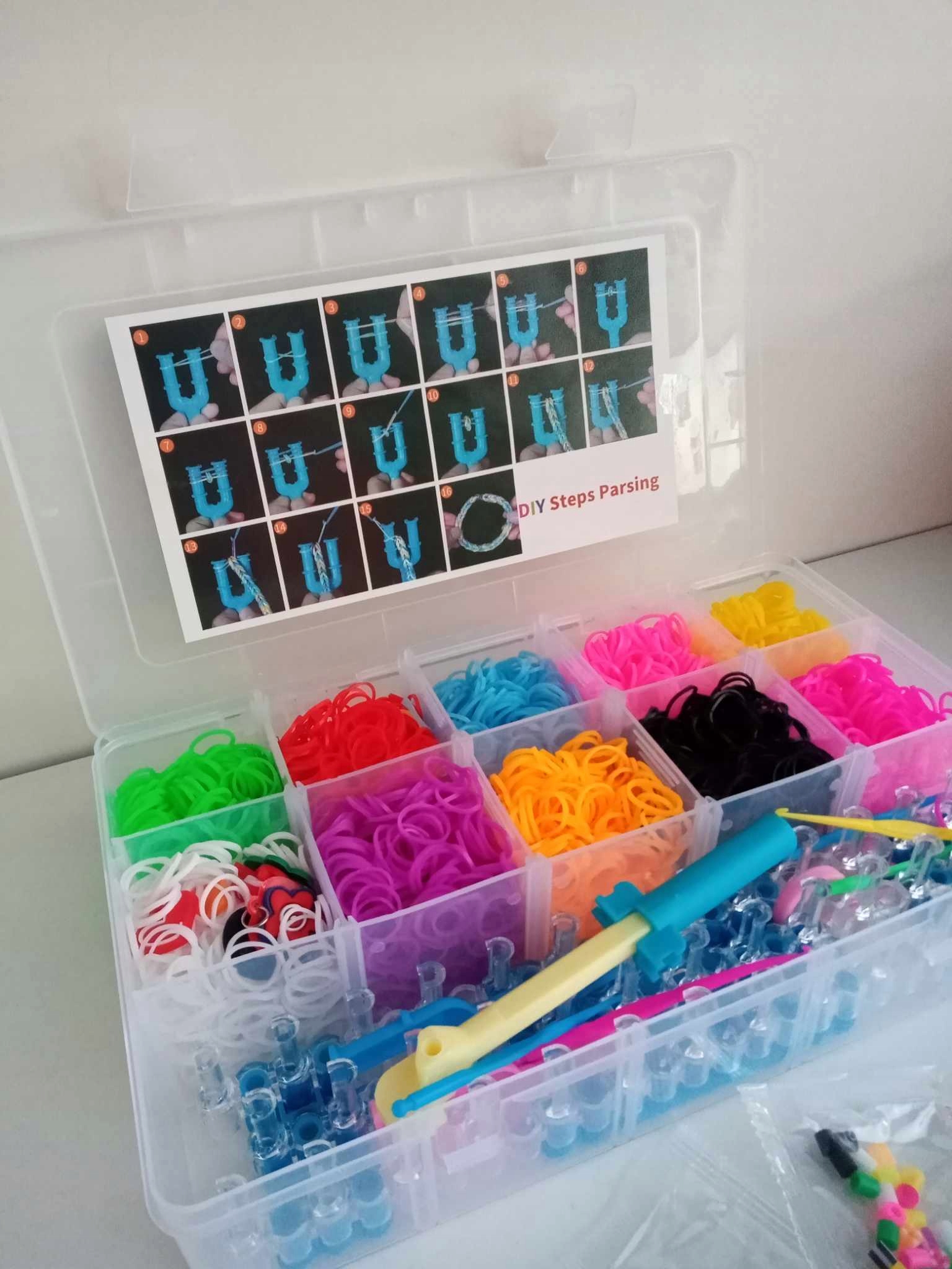 Наш творчий набір дозволяє створити власний браслет, гумка для волосся, бант, гумка для волосся або багато інших предметів. Браслети можна прикрасити різнокольоровими підвісками (не входять в комплект).