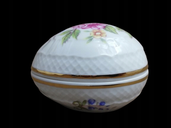 Суб'єкт продажу - стара порцелянова коробка/шкатулка для чудес, чудо -яєць, підписана з ознакою виробництва Hollohaz, Угорщина