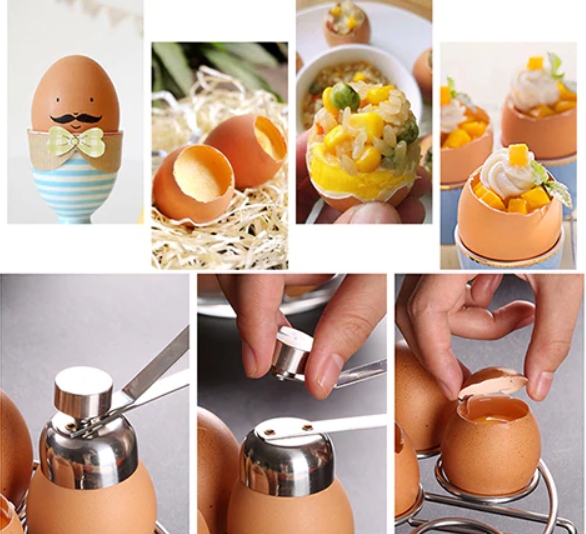 Кутери можна використовувати не тільки для яєць некруто. Ви також можете використовувати їх для сирих або зварених круто яєць. Ви також можете використовувати їх, щоб видалити верхню частину яйця для начинки. На фото нижче ви можете знайти різноманітні додатки.