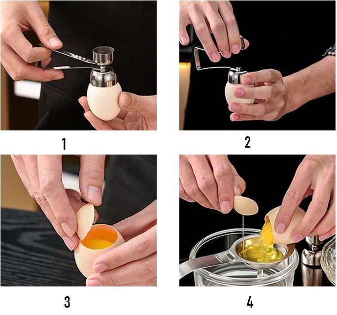 Просто покладіть різці на верхню частину яйця, потягніть ручку, натисніть на неї, а потім відпустіть. І все!