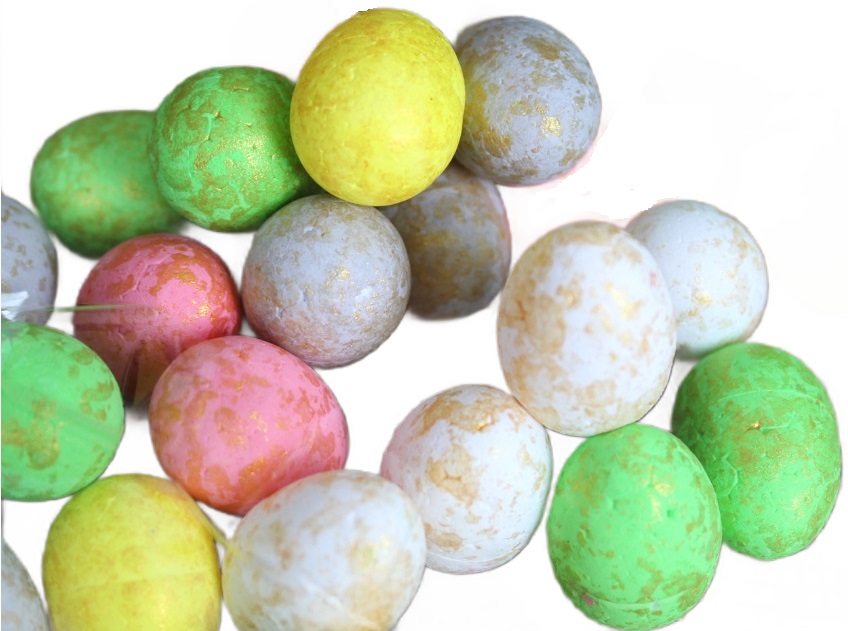 ЯЙЦЯ ПІНОПОЛІСТИРОЛЬНІ ПЛЯМИСТІ КОЛЬОРОВІ ПОЗОЛОЧЕНІ 2,5 СМ 50 ШТ ВЕЛИКДЕНЬ