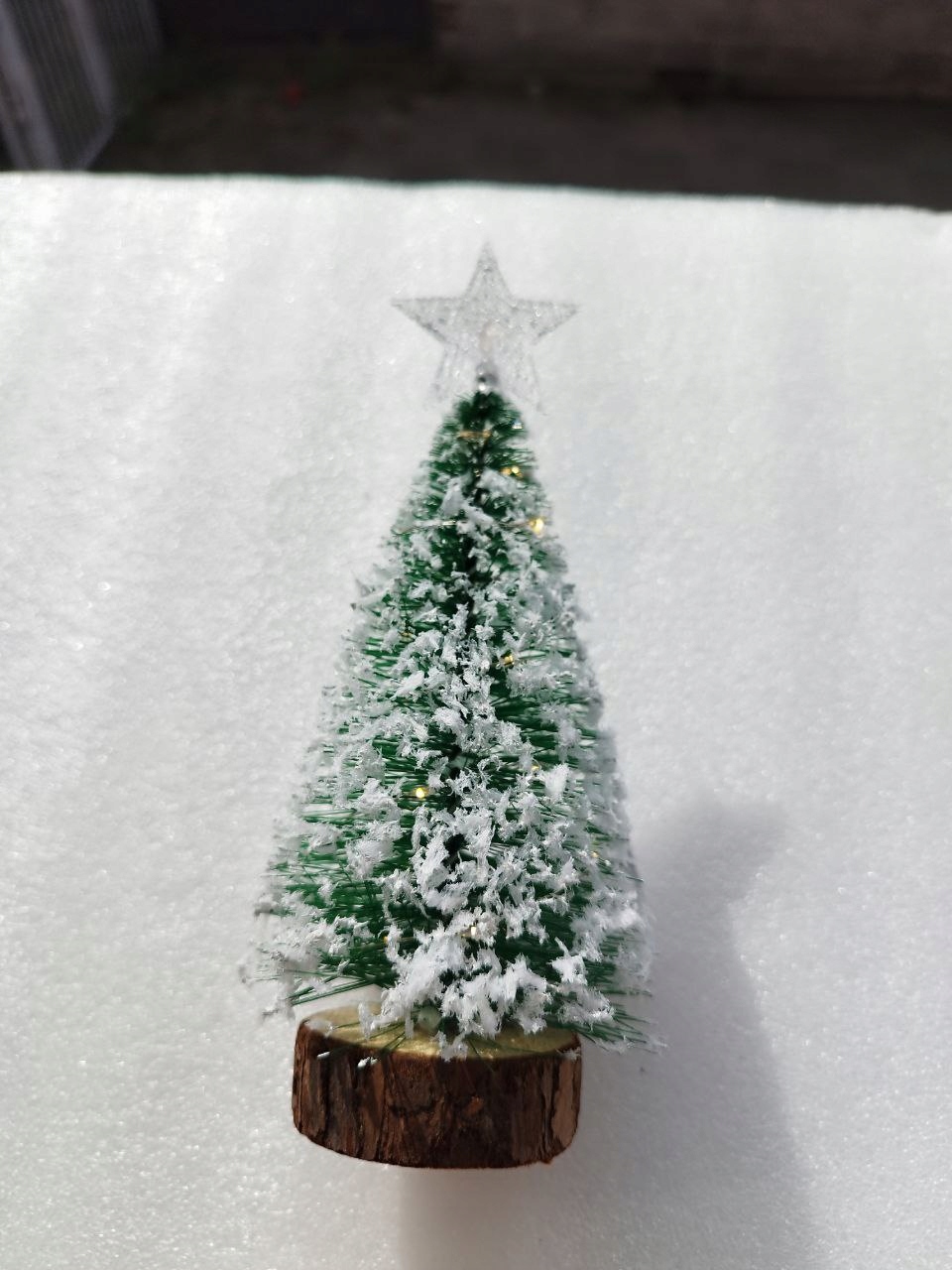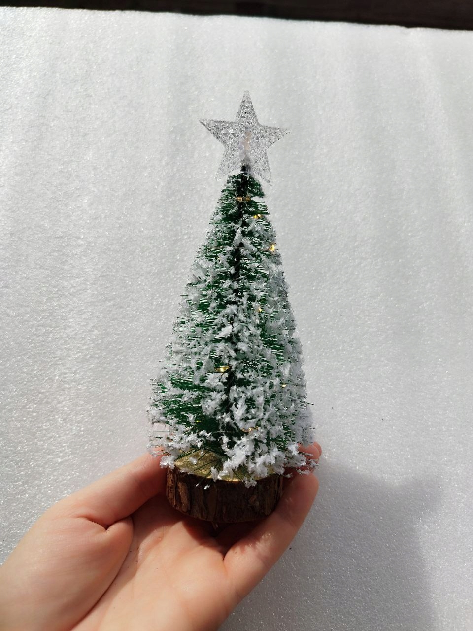 Ялинка маленька 19 см, світиться зелена, ЗАСНІЖЕНА ДЛЯ ЯЛИНОВОГО ПРИКРАСУ