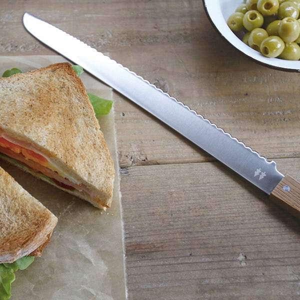 , виготовлений Shizu Hamono Co. в Секі, Гіфу, цей хлібний ніж був спеціально створений для різання більш жорстких хлібів із закваски та м'яких французьких хлібів. Завдяки використанню двох різних лопатей в ідеальному положенні для ідеального рубання обох типів хліба, цей ніж використовується професійними кухарями в Японії.