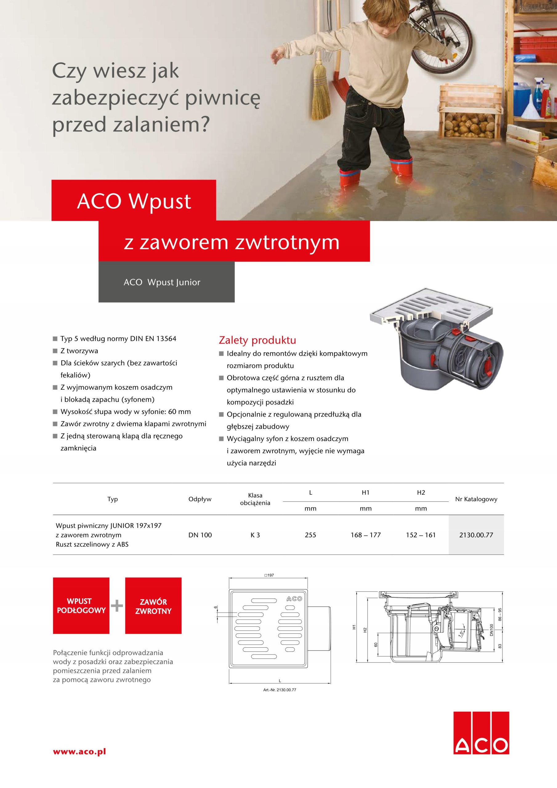 Яр / решітка ACO JUNIOR зі зворотним клапаном DN110