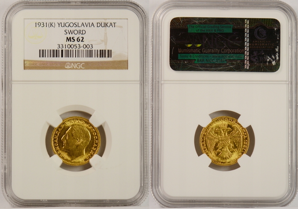 ЮГОСЛАВІЯ ДУКАТ 1931 МС62 ЗОЛОТО NGC