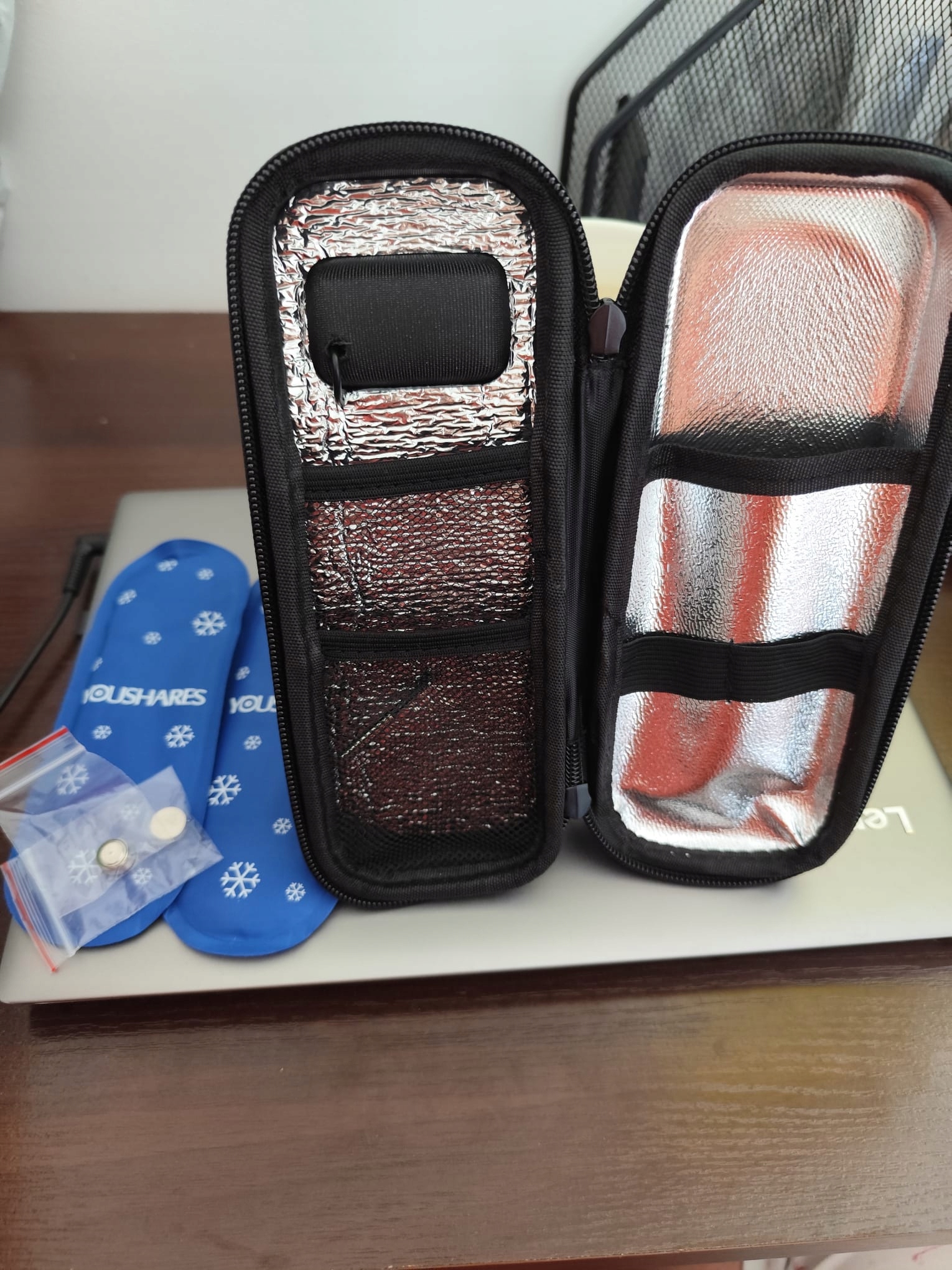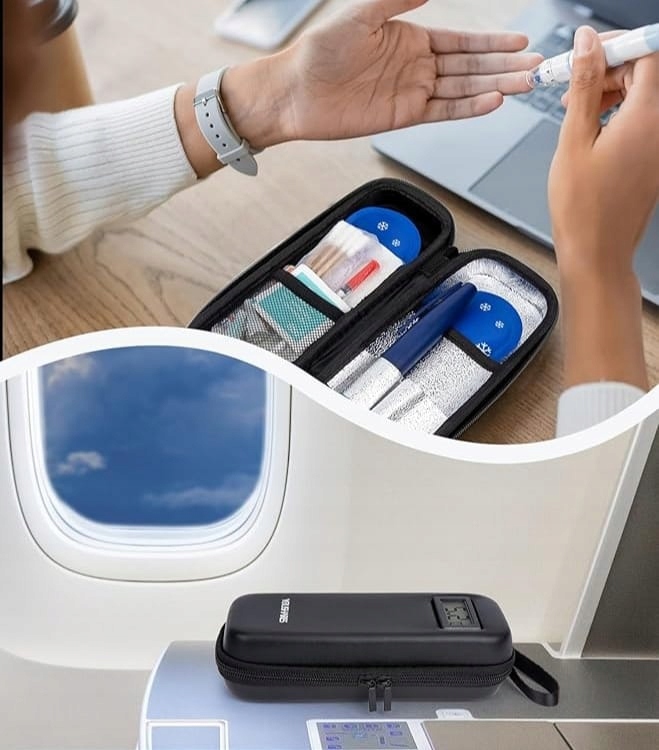 Сучасний та безпечний транспортний розчин інсуліну- молодіжні охолоджувач -це компактний, ізотермальний корпус , оснащений зрізними вставками охолодження та затвердженими TSA та цифровим дисплеєм температури .
