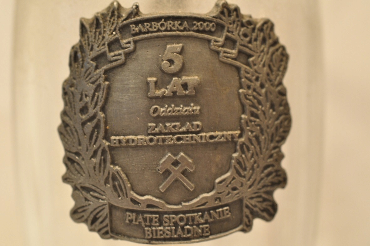 На передній частині кухля є жерстяна емблема з ювілейним написом: