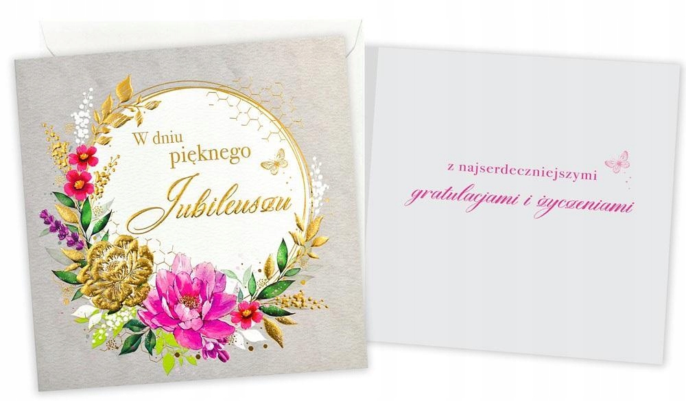 Картка серії Quadro - ідеальна ідея для сувенірів Ювілей. Карти відрізняються сучасним дизайном, представленим у простому вигляді. Центр кожної картки має спеціально відповідні побажання з простором для власної відданості. Ціле ідеально доповнюється конвертом, розробленою з увагою до кожної деталі, що відповідає картці. Особливості: Розмір: 15,5 х 15,5 см після складання конверта: стилістично збігається з карткою прикрас: блискуча фольга: Ювілей