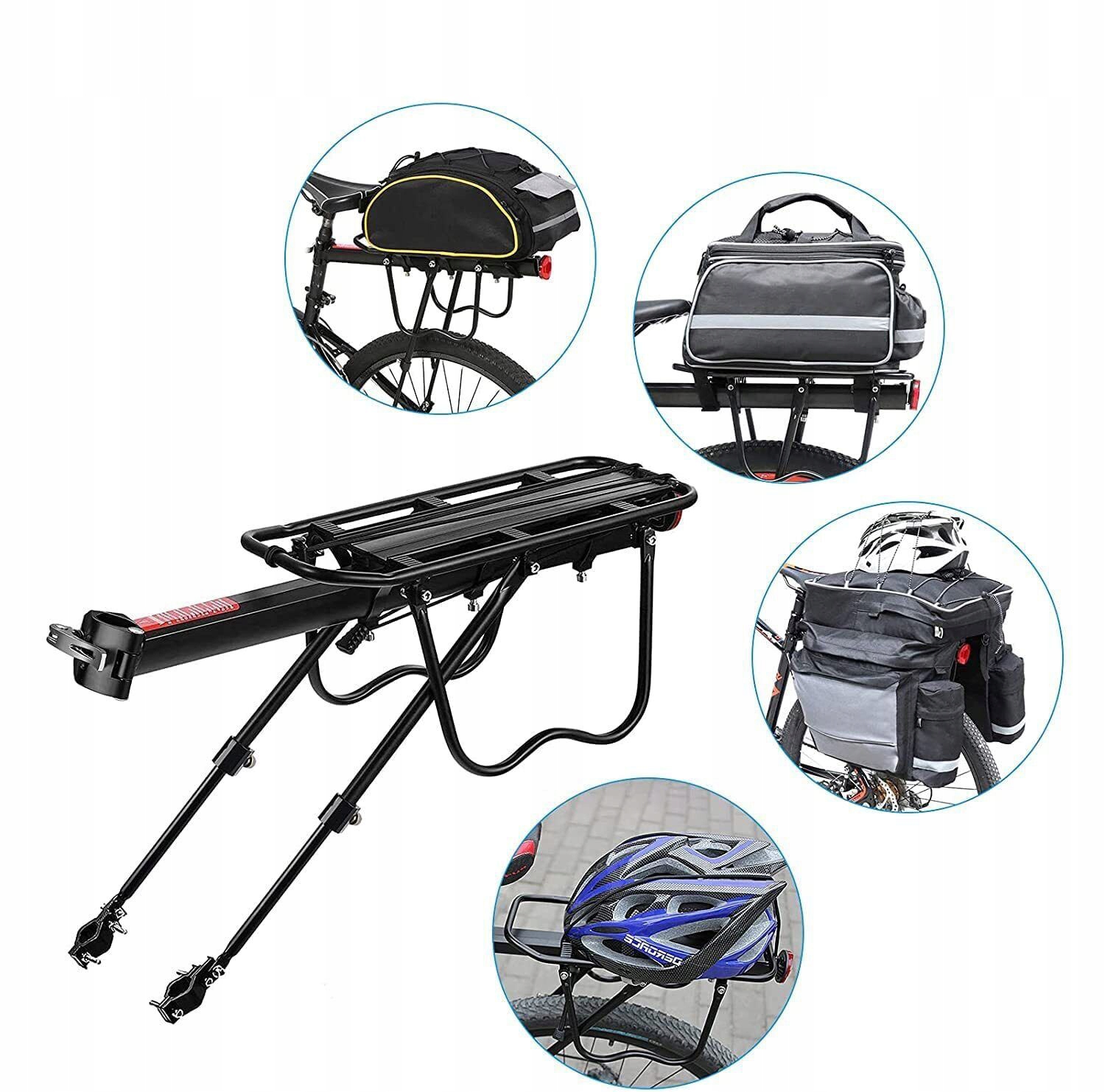 Високоякісна універсальна алюмінієва стійка для велосипедів з максимальна вантажопідйомність до 50 кг. Кріпиться стабільно до підсідельної труби (діаметр труби 27,2 мм-31,8 мм) і до задньої частини рами за допомогою швидкого доводчика (швидка установка самої платформи до підсідельної труби) і гвинти, що забезпечують стабільну опору.