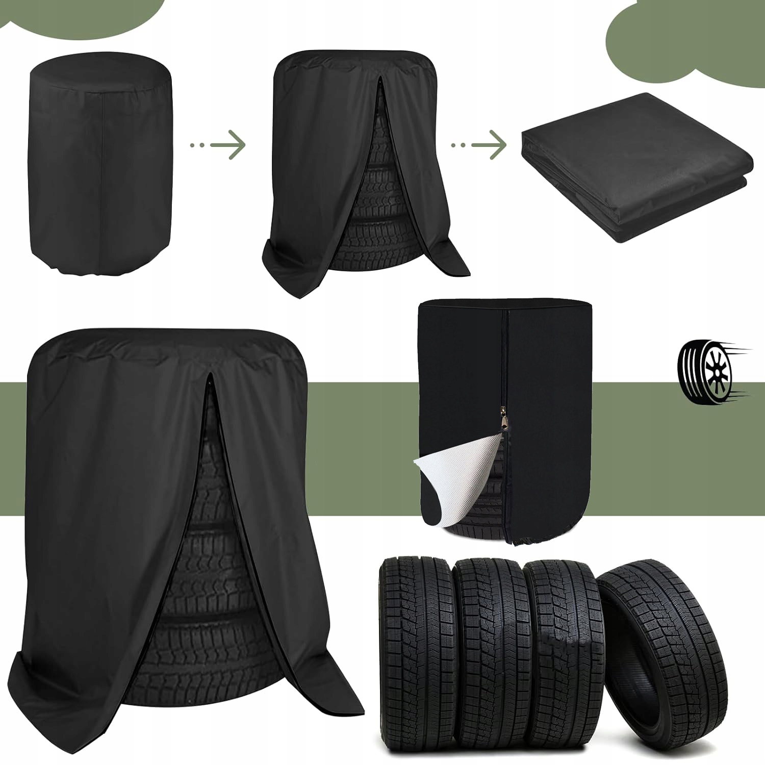 🕋- розмір становить 85*120 см/33,5*47,2 дюйма, він може вмістити до 4 шин 18-22 дюйма (ви також можете використовувати для Felgs), перед тим, як виміряти шини з покупкою для визначення правильного розміру.
