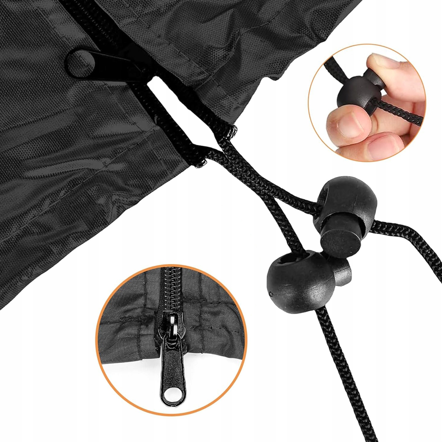 Ця кришка оснащена повною блискавкою, яка полегшує надягання та видалення, а також кабель внизу, щоб безпечно зв'язати його, заважаючи йому дмути його навіть у вітряні дні.