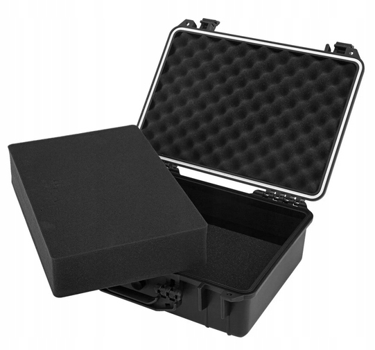 Завдяки захисному класу IP67 та клапані тиску клапана, вміст справи захищений від води та пилу. Продукт також витримує різниці тиску на високій висоті та високій температурі. Піні вставки, включаючи два профільовані плед. Вставки можуть бути перекладені для отримання продукту максимально або при необхідності. Камера була обладнана у закритому кришці з гумовою прокладкою та засувкою. Легше переносити його під час подорожі з цінними предметами.