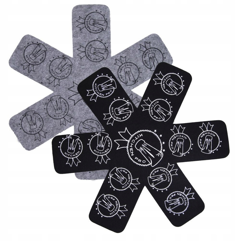 Набір із двох захисних розкладів суден. Вони захищають каструлі, горщики, миски та інші страви з подряпин. Чорні або сірі розпірки.
