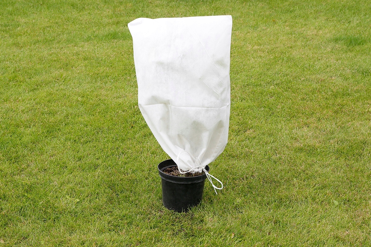 ❄️ Капюшон слід розмістити безпосередньо на рослині та затягнути вшитим шнурком - якомога ближче до землі.