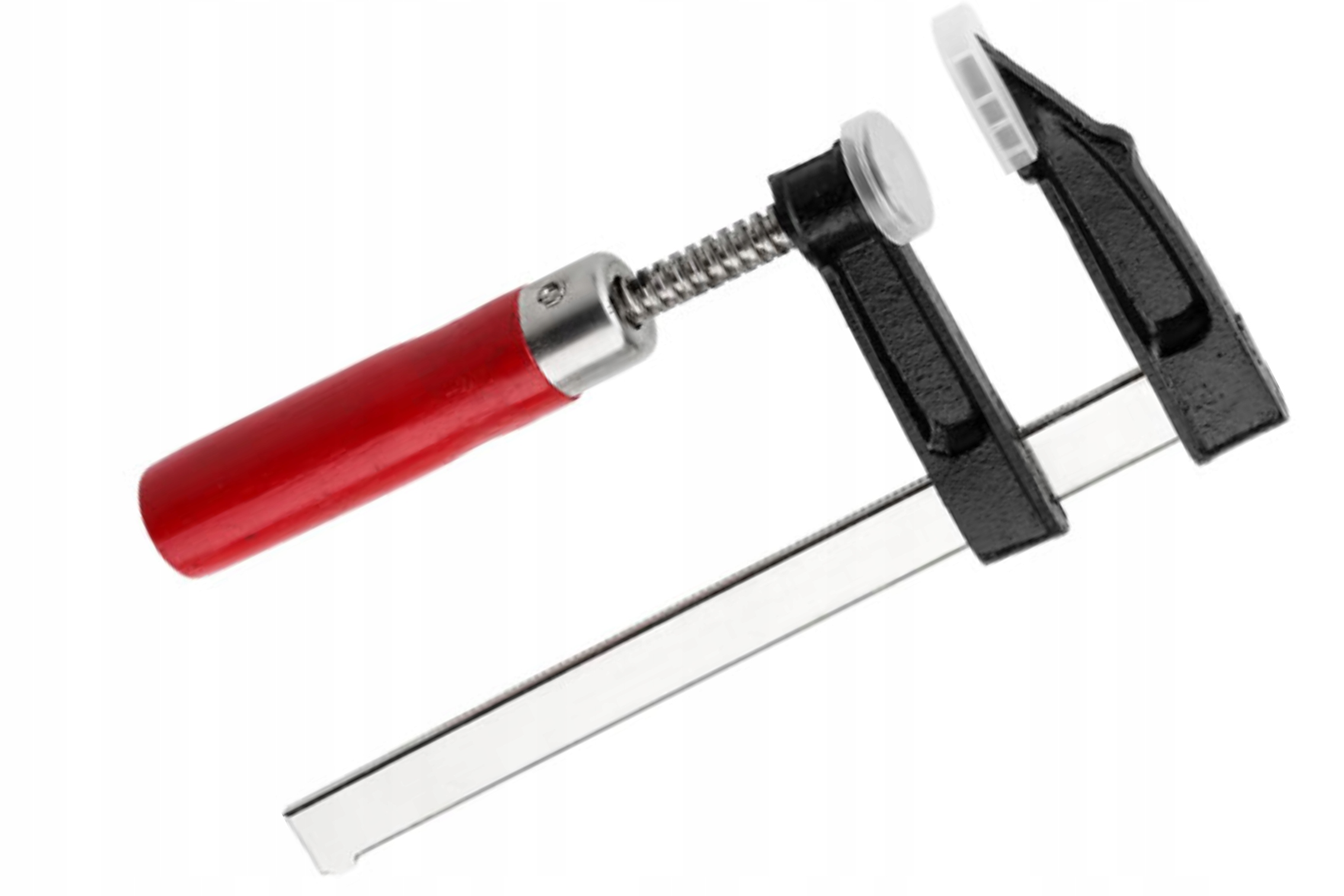 Столярний затискач типу F виготовлено з високоякісних матеріалів. Це дозволяє зручно кріпити оброблювані елементи до столу і правильно їх монтувати. Затискач забезпечує сильний тиск і надійне утримання матеріалу. Пластикові кришки захищають заготовку від подряпин. Струбцина ідеально підходить для столярних майстерень і різноманітних модельних робіт.