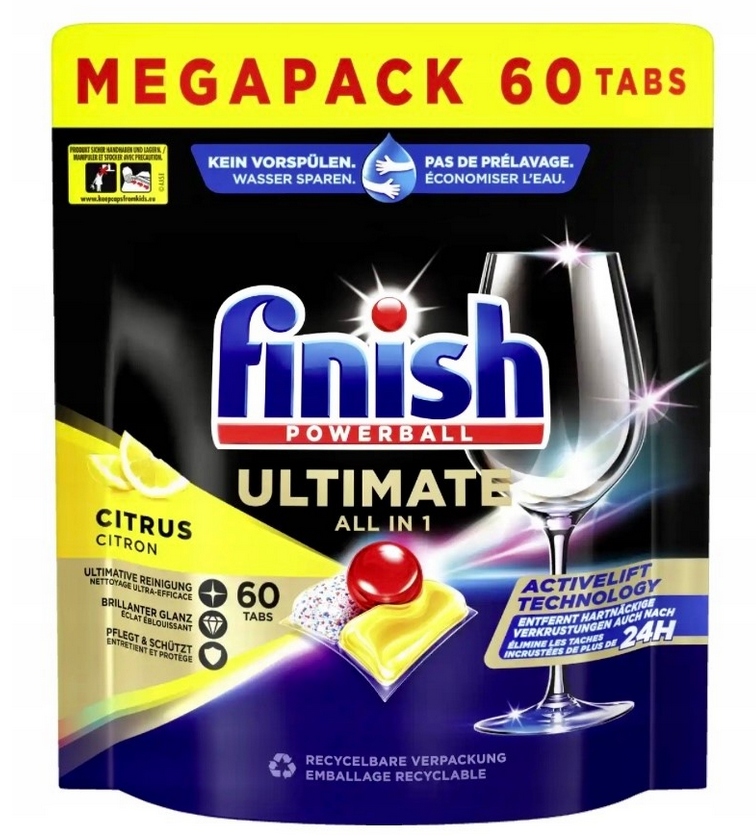 Закінчити Ultimate All IN 1 забезпечує глибоке очищення та діамантове сяйво, від першого використання, кожного разу. Розширена формула технології Activelift ефективно видаляє всі види харчових залишків, навіть висушені на 24 години - без початкового промивання. Виняткова ефективність капсули, хімічна маса якої знизилася на 15% порівняно з табличкою потужності обробки.