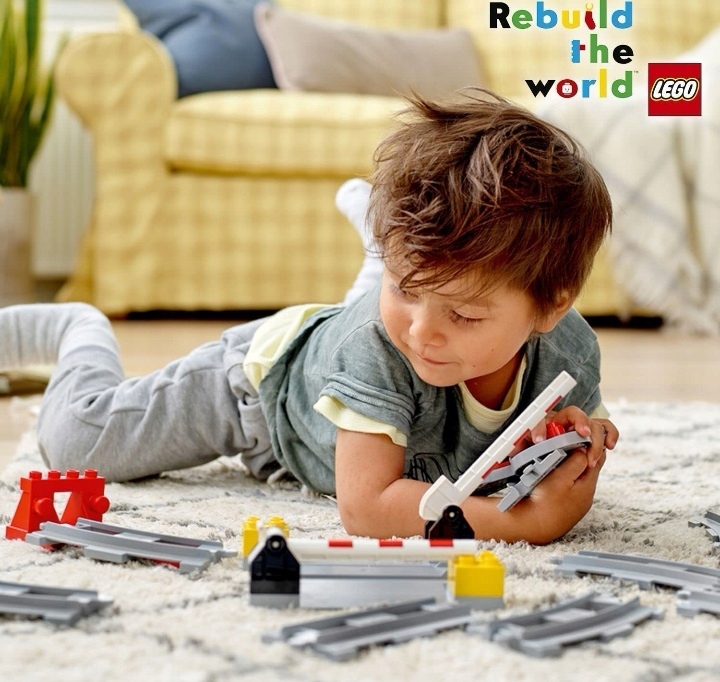 Покажіть дитині, як легко розмістити червону функціональну цеглинку на рейках. Це гарантує, що всі сумісні потяги (включно з наборами 10874 Train або 10875 Freight Train) зупиняться, коли вони досягнуть його.