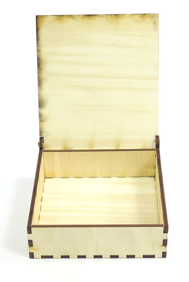 фанерну коробку товщиною 3 мм із кришкою, що відкривається, і зовнішні розміри: 10x10x3 см.
