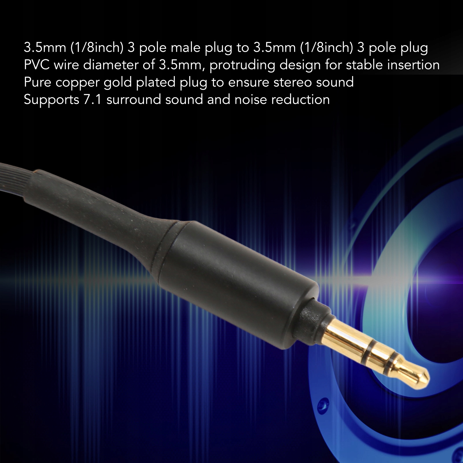 3. Найвищий звук: 3-полюсний 3,5-мм чоловічий штекер (1/8 дюйма) для 3,5 мм 3-полюсної пробки (1/8 дюйма), діаметр кабелю ПВХ становить 3,5 мм, виступаюча структура забезпечує стабільне з'єднання, покрита чистою міддю, забезпечує стерео звукову підтримку Spatial Sound 7.1, шумову підтримку.
