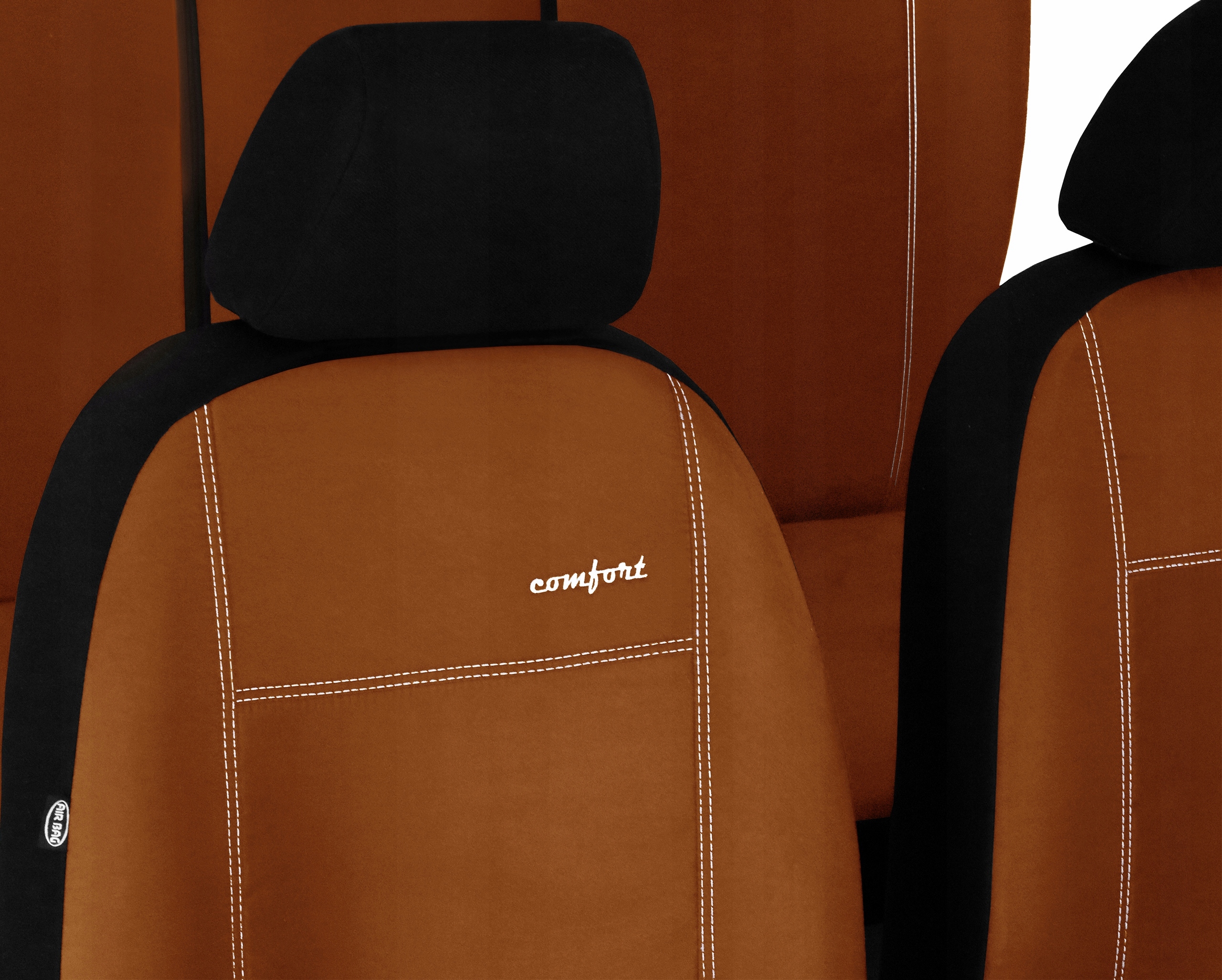 Наші чохли COMFORT повністю покривають сидіння, передня частина, боки та спинка сидінь на 100% покриті матеріалом. Завдяки цьому рішенню оригінальна оббивка сидінь захищена від пошкоджень і бруду в найбільш відкритих місцях.