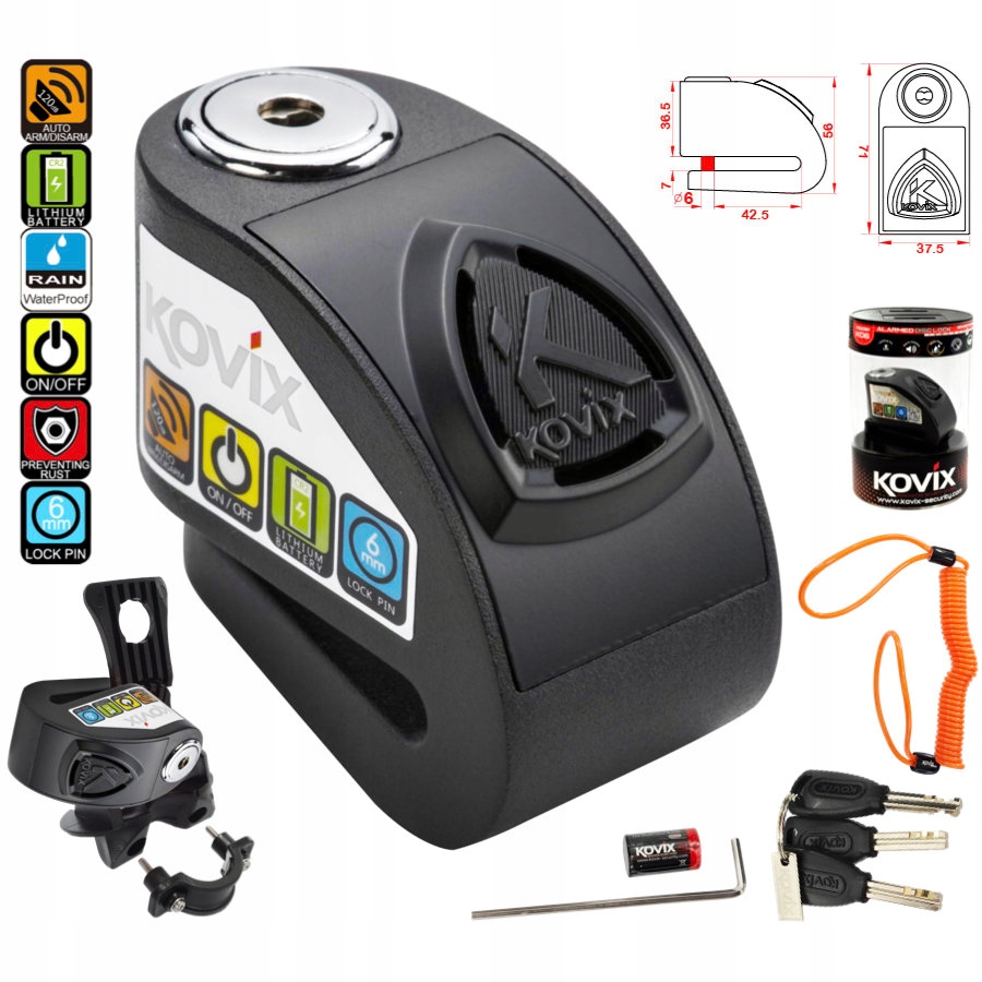 Замок гальмівного диска з вбудованою сигналізацією з інтенсивністю звуку 120dB з можливістю налаштування опції ON/OFF сирени. Замок з нержавіючої сталі та водонепроникні електричні компоненти гарантують захист від корозії та надійність за будь-яких погодних умов. Замок оснащений довговічною та екологічно чистою літієвою батареєю. Захист блокує колесо за допомогою штифта діаметром 6 мм, що запобігає руху та переміщенню мотоцикла чи скутера.