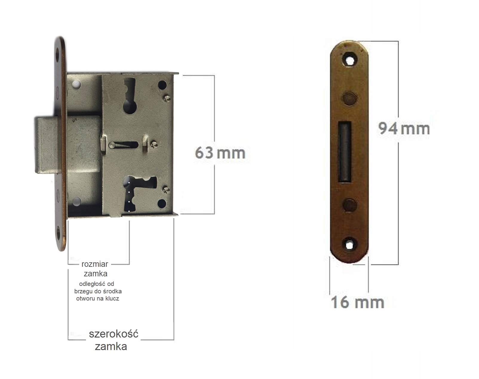 - Розмір 15 мм - відстань від краю замка до центру отвору під ключ