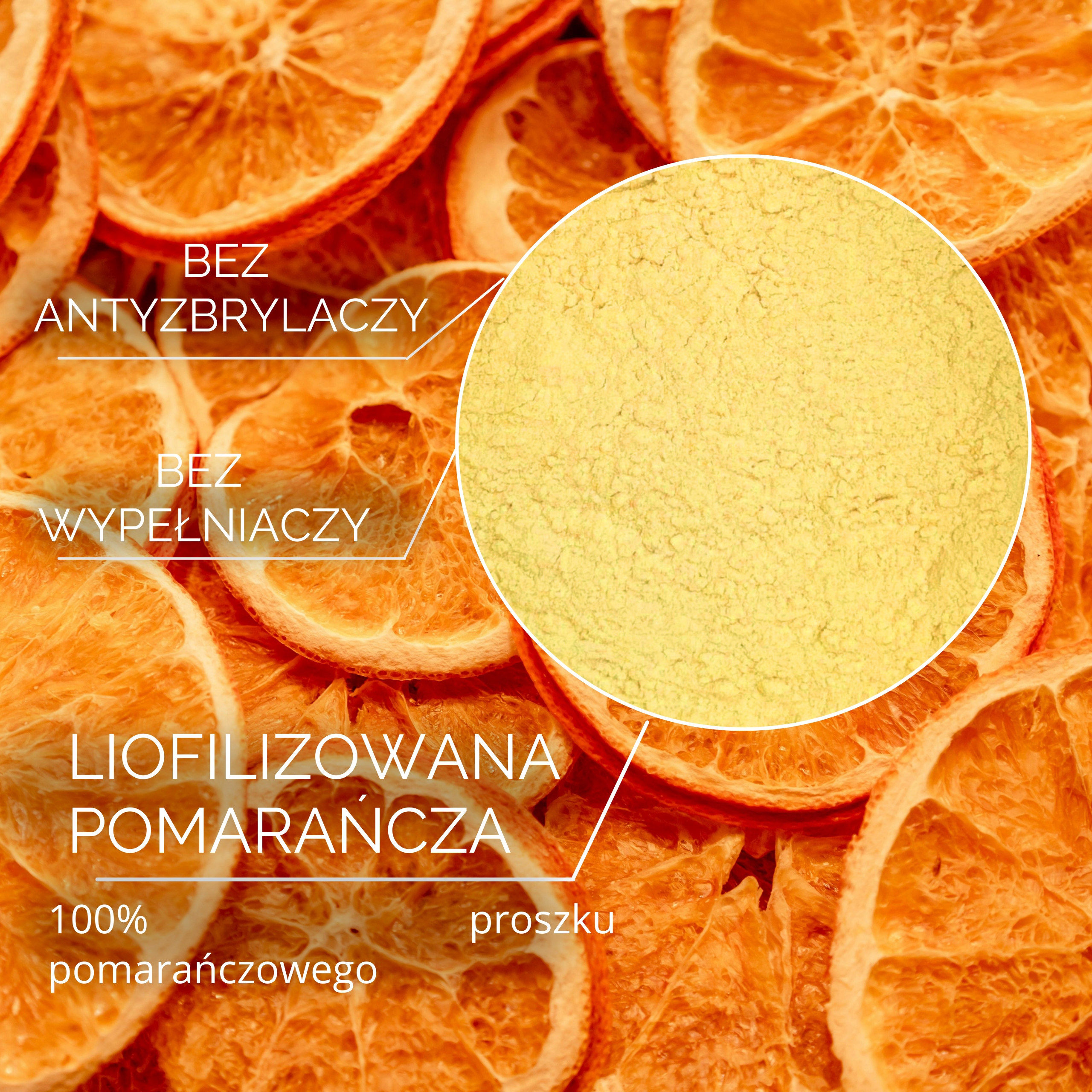 Завдяки делікатному процесу заморожування -вільного, помаранчевий зберігає свою природну свіжість і смак і навіть стає більш інтенсивним! Наш помаранчевий порошок - це 100% чиста фруктова радість, готова до використання на вашій кухні будь -яким чином.