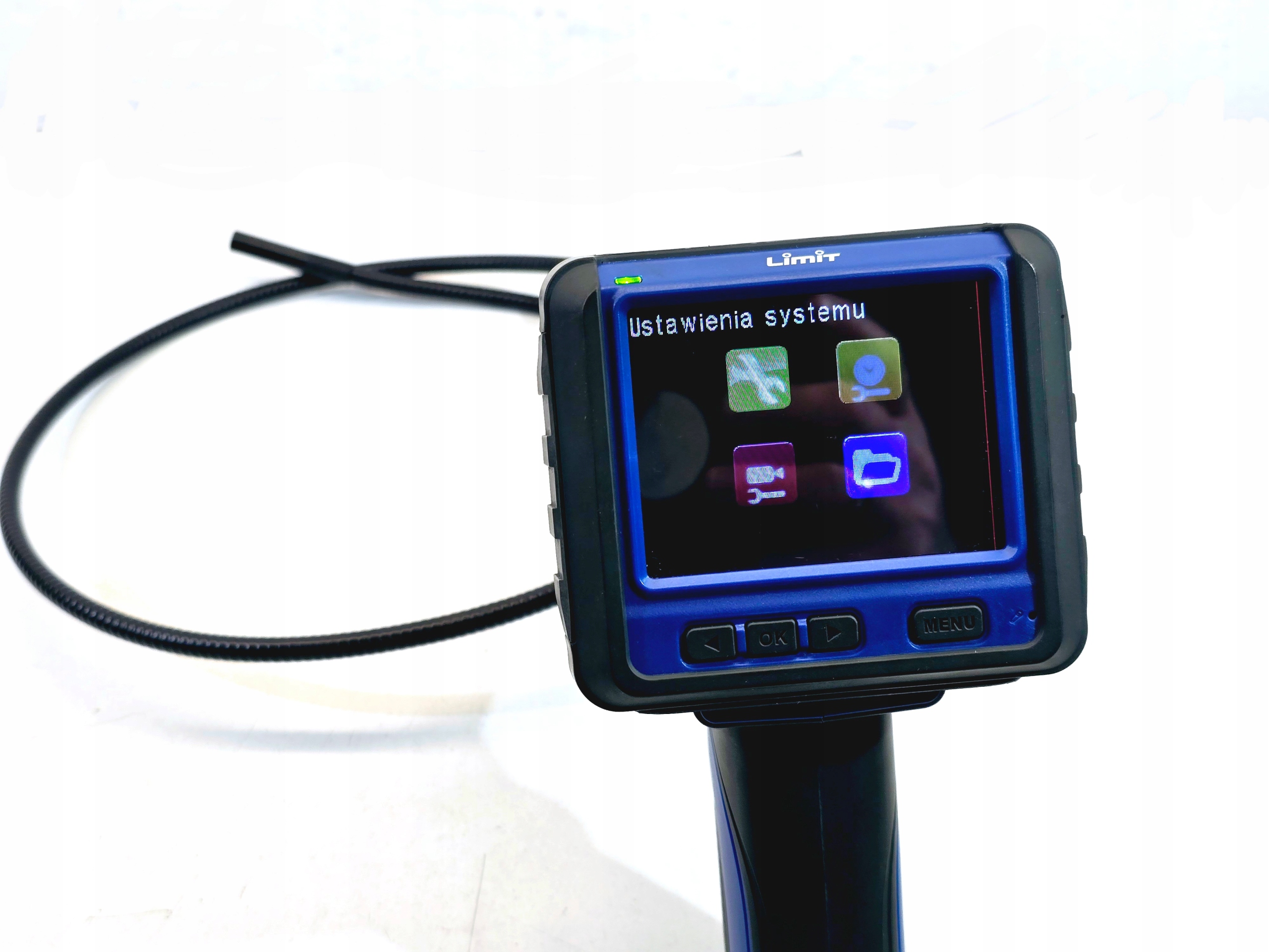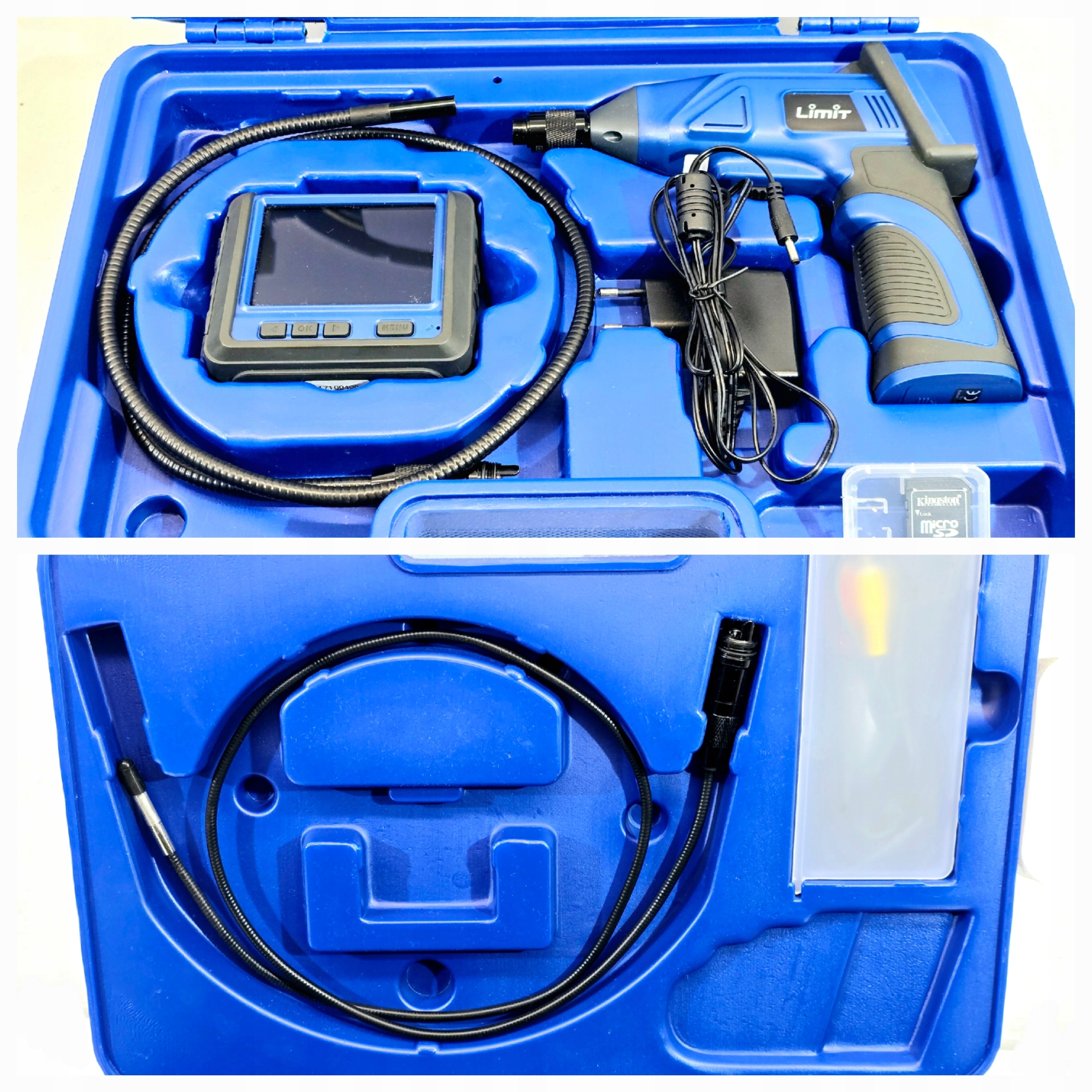 Інспекційна камера з функцією запису Обмеження 19011-0106 . Набір включає дві камери 5,8 мм та 9 мм із світлодіодним підсвічуванням. Довжина руки з камерою 90 см. У комплекті з зарядним пристроєм, 8 Гб карта пам'яті, набір проводів та оригінальної валізи. Пристрій повністю функціональний, дуже хороший стан.