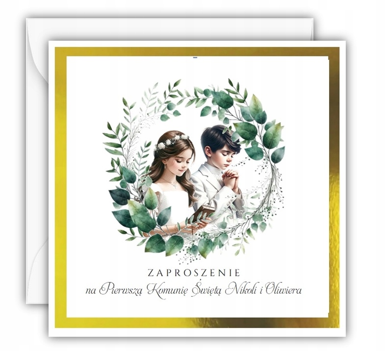 Запрошення до першого Причастя - Золоте дзеркало з графікою дівчинки, хлопчика або братів і сестер