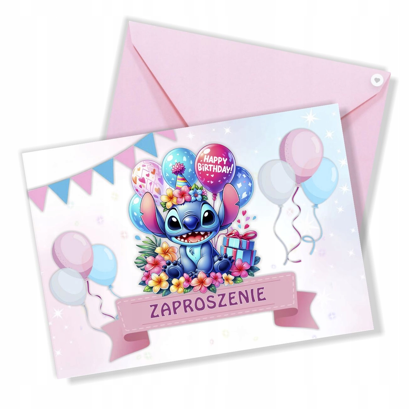 Запрошення на день народження дітей Ліло та Стіх + рожевий конверт