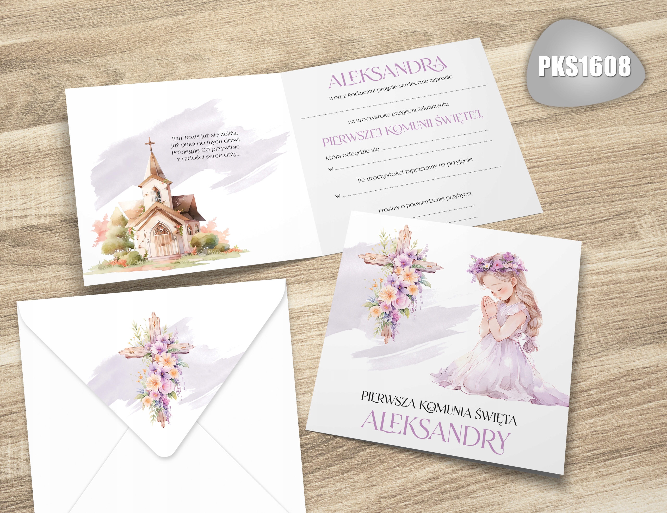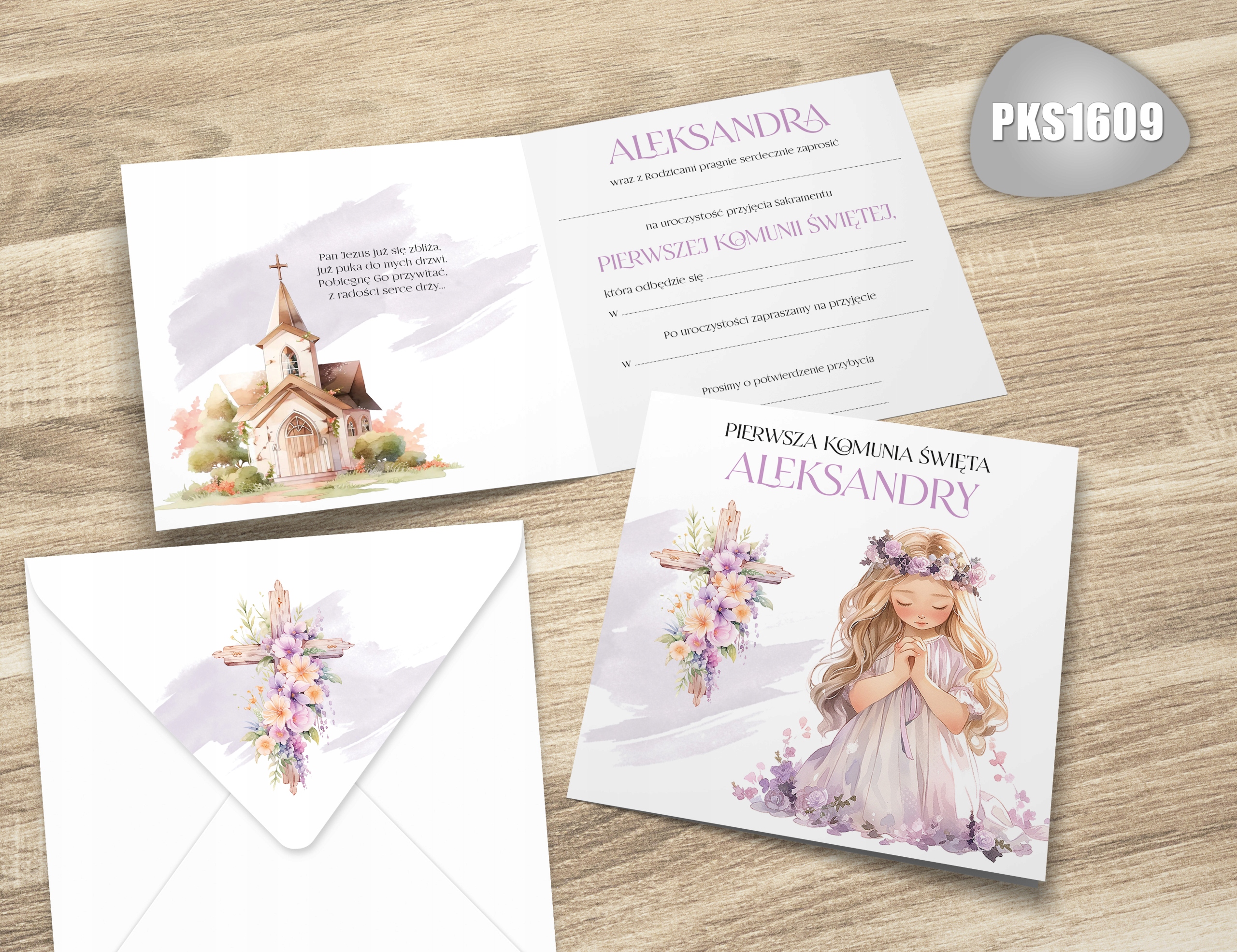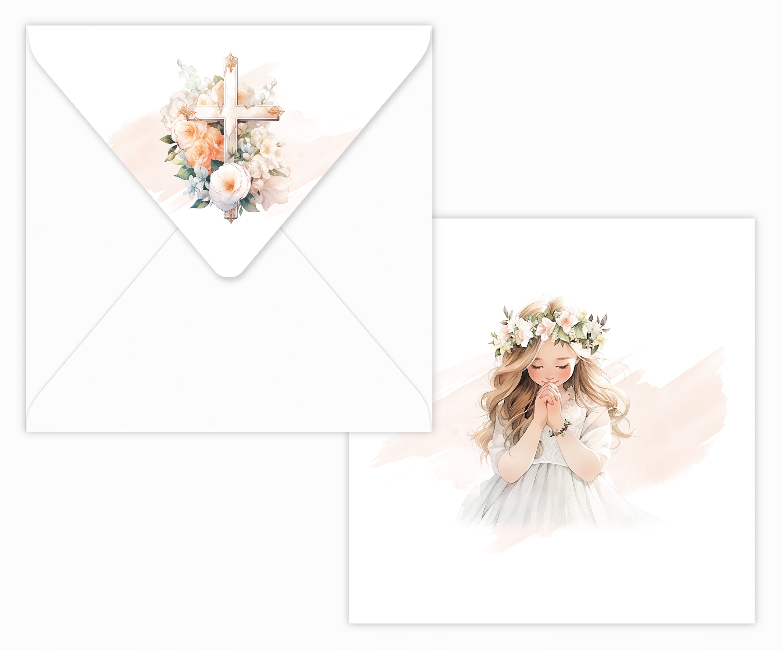 Запрошення на перше причастя ІМ'Я ДИТИНИ і КОНВЕРТ З ПРИНТОМ