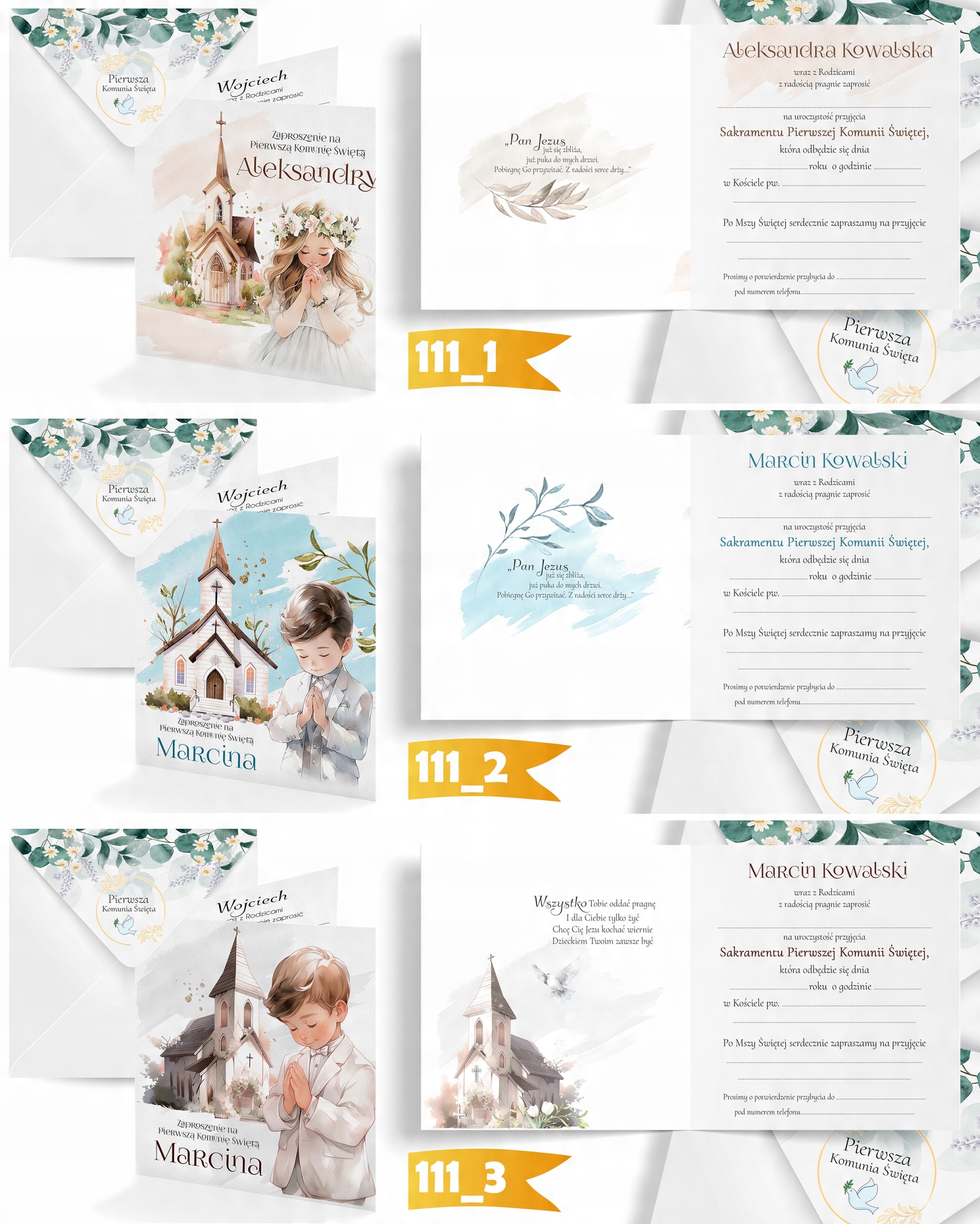 За стандартом ми надсилаємо вам наші конверти з друком для Святого Причастя.