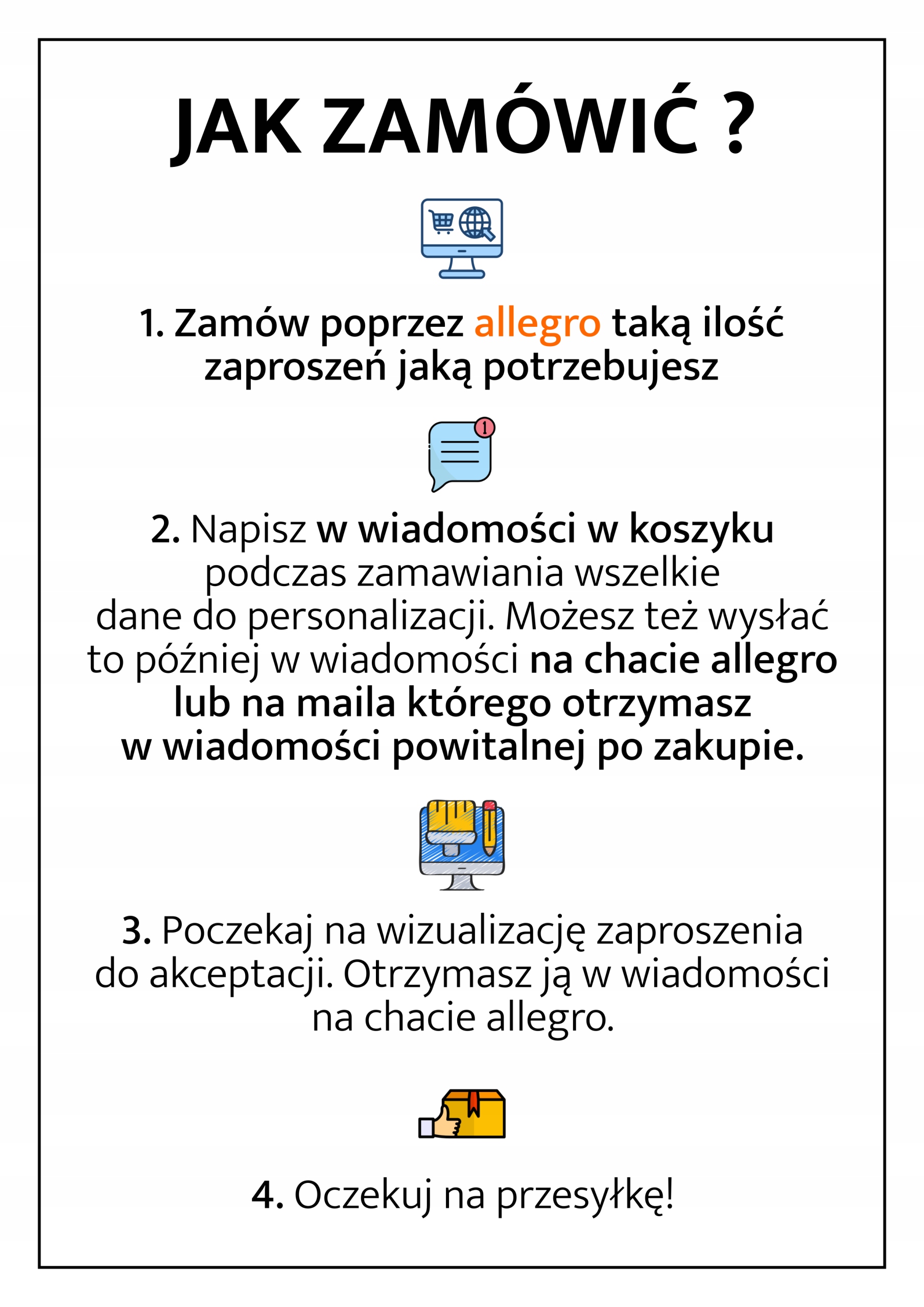 - Вибраний дизайн (якщо дизайн не надано, запрошення буде виготовлено так, як показано на першій фотографії аукціону).