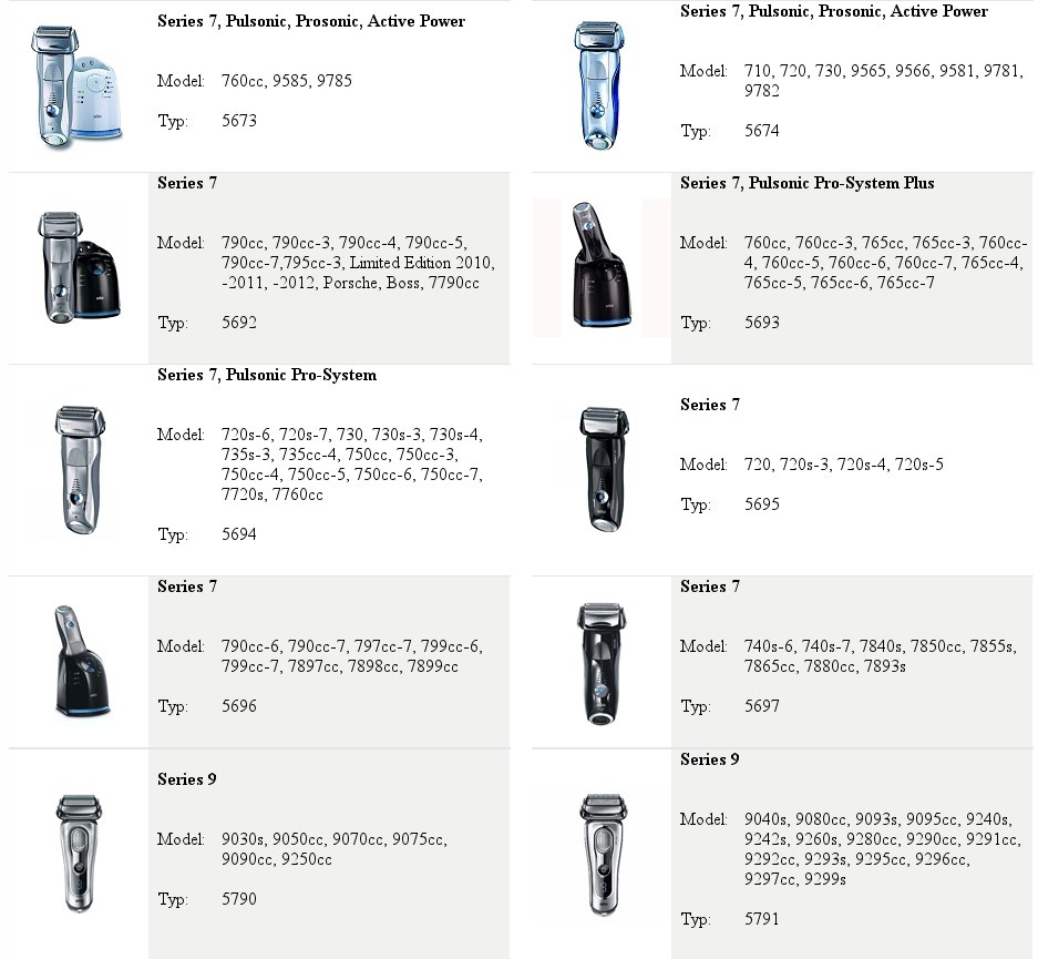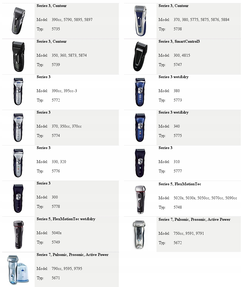 Призначено для таких моделей бритв Braun (натисніть ctrl + f для пошуку):