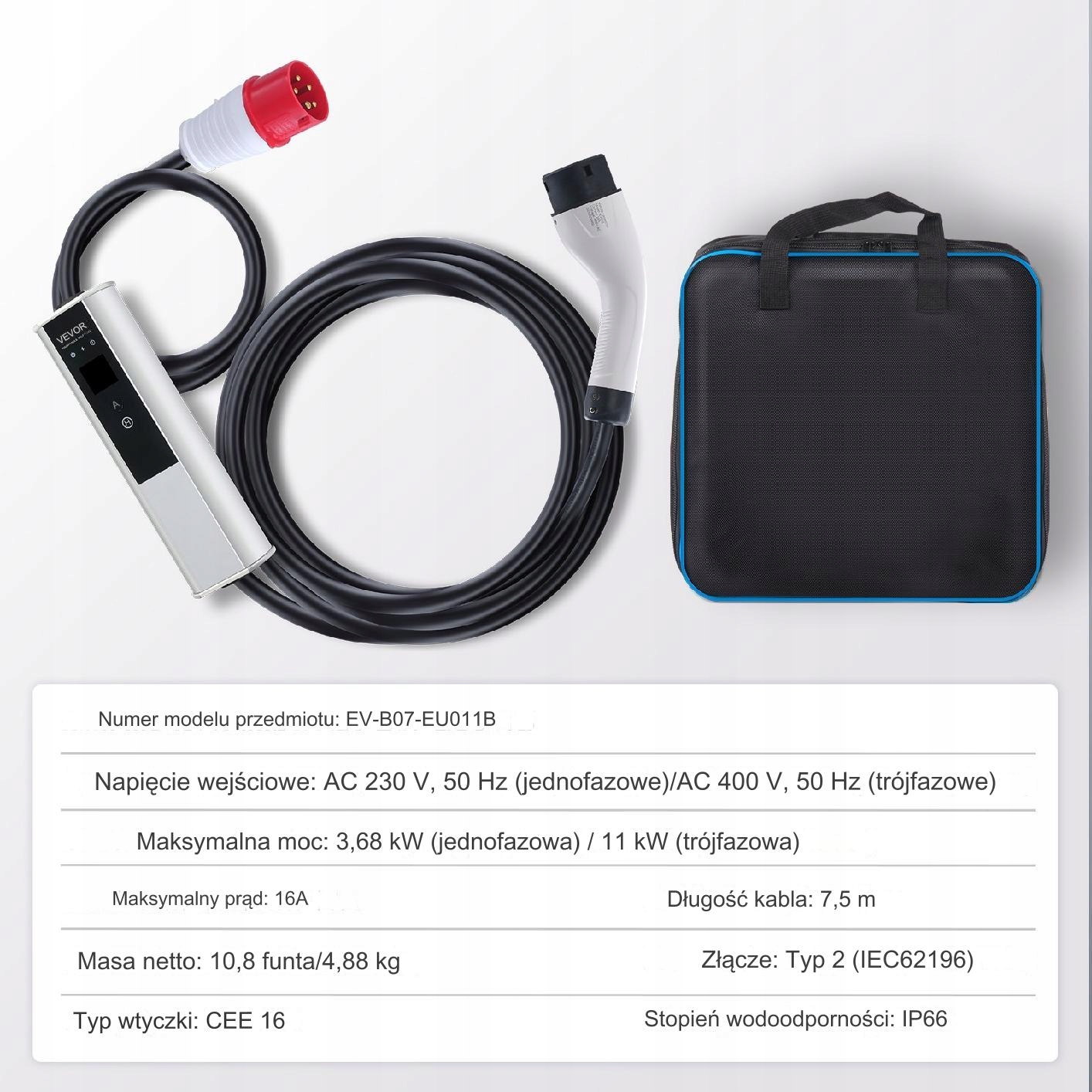 Відкрийте переносний зарядний пристрій EV з потужністю до 11 кВт з кабелем 7,5 м! Оснащений РК -екраном, додатком для управління та алюмінієвим кожухом, він забезпечує швидку та безпечну зарядку електромобілів типу 2, як вдома, так і на ходу.