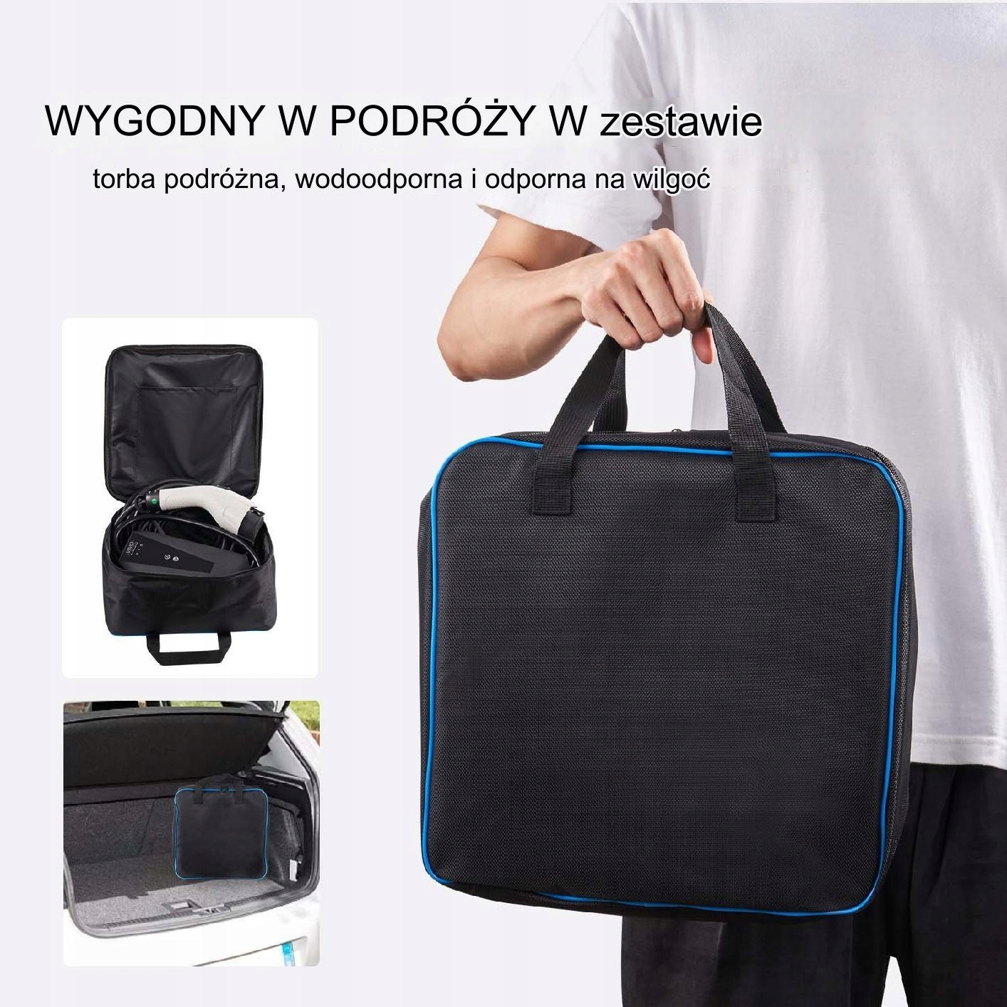 Набір включає в себе сумку, базу, власник зарядного пристрою та адаптер, що забезпечує універсальність використання. Ви можете встановити зарядний пристрій як постійну станцію в гаражі або взяти його з собою в подорож, зберігаючи кабель у сумці. Завдяки цьому зарядку електричного транспортного засобу стає зручним і доступним де -небудь, де доступна електрична розетка.