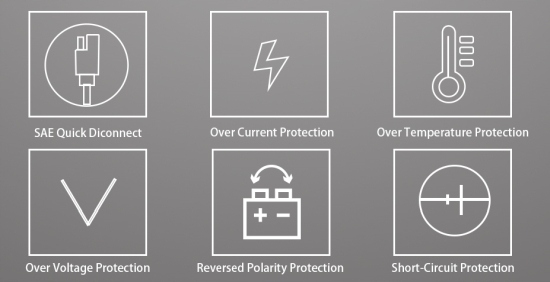 Зарядний пристрій автоматично регулює зарядний струм відповідно до малої ємності батареї, запобігаючи її перезарядженню та перегріву.