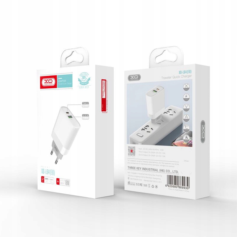 ЗАРЯДНИЙ ПРИСТРІЙ XO 18W QC 3.0 USB PD і USB-C PLUG