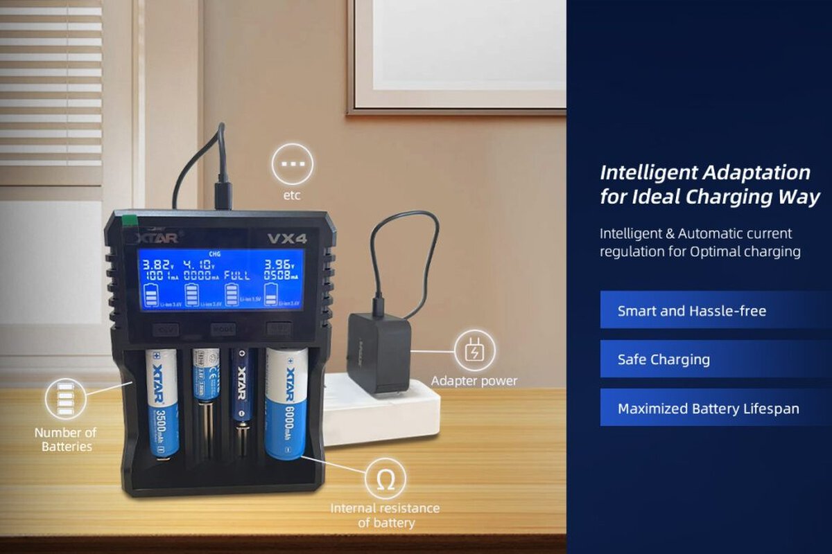 vx4-це розширений інтелектуальний зарядний пристрій і розпізнає тип акумулятора, розміщеного в ньому (за винятком Li-Fepo4).