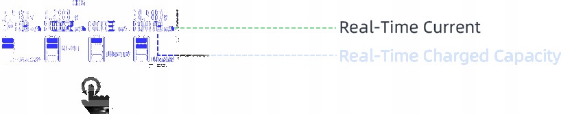 У випадку батарейних батарей Li-Ion 1,5 В та 1,2 В Ni-MH зарядний пристрій завжди заряджається з струмом 0,5A, тоді як у випадку з батареями-іонними батарейами 3,6 / 3,7 В та 3,2 В Li-Fepo4 користувач може вибирати з широкого діапазону зарядних струмів: