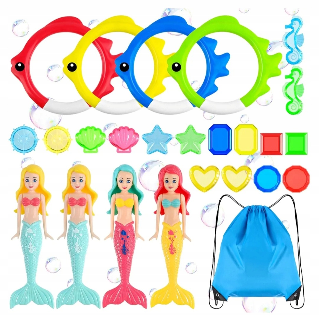 ZATOPKI ZABAWKA DO NURKOWANIA NAUKA PŁYWANIA 24 szt + torba