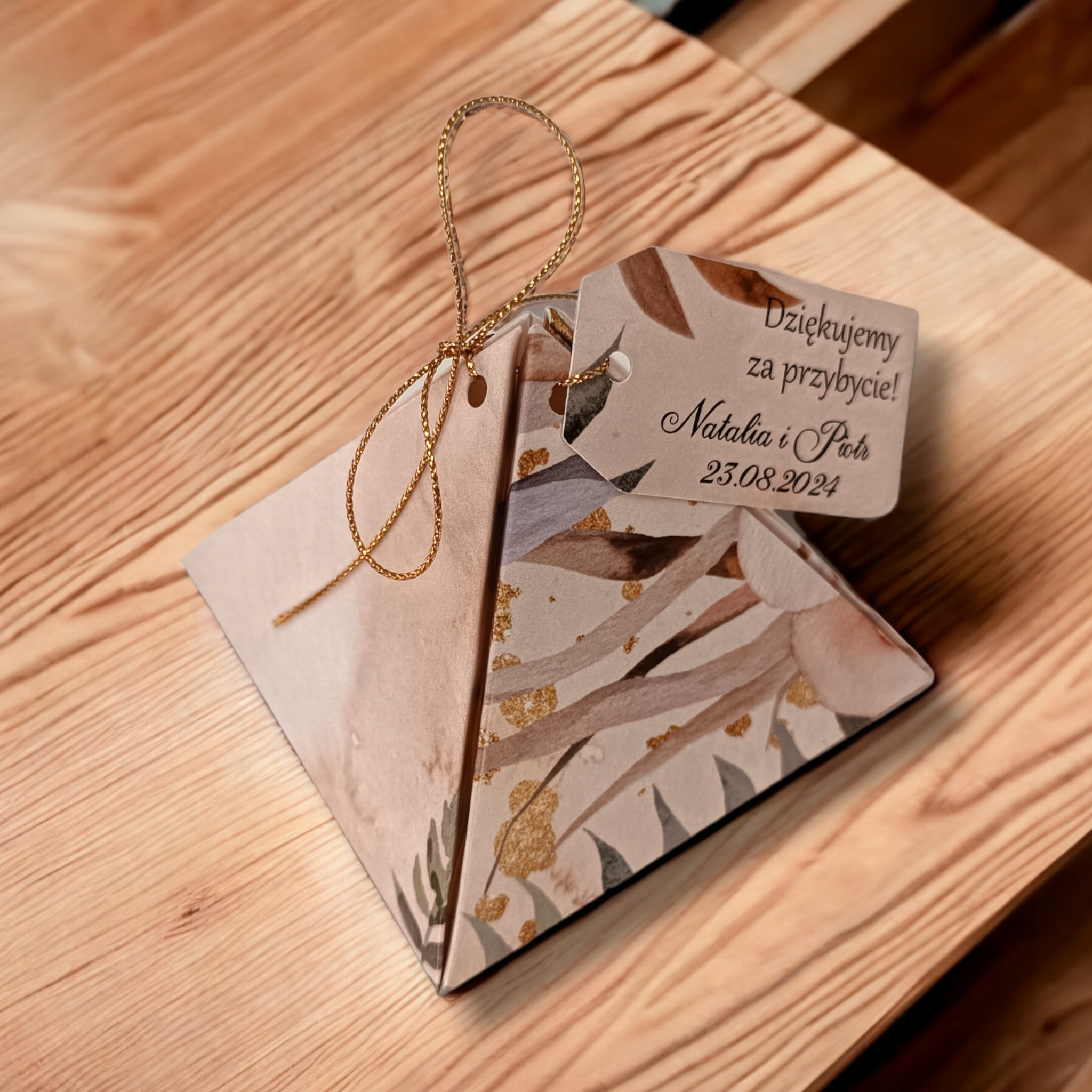 Ви хочете елегантно спакувати завдяки гостям? Ви можете зробити це оригінальним способом, використовуючи наші стильні пірамідні коробки. Вони ідеально підходять для упаковки будь -яких невеликих подарунків (пралінів, кадрів, желе, статуетки тощо), безумовно, сподобається всім запрошеним. Вони також будуть вираженням вдячності за прихід і переживають з вами цей особливий день, дозволить їм відчувати себе особливими. Вони красиво виглядають на обкладинках гостей.