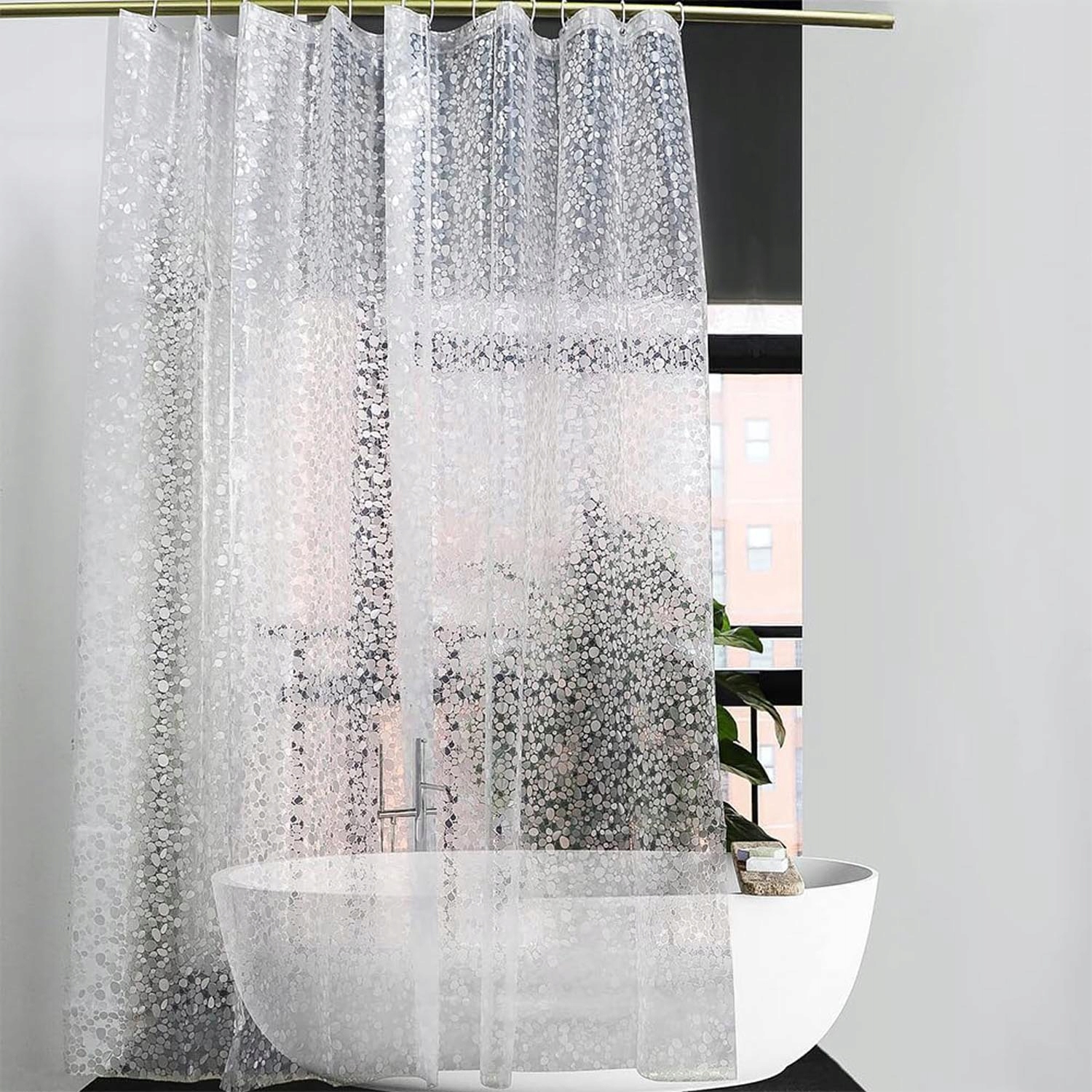 Екрана 3D -завіса для душу (180x200 см) виготовлена з 100% матеріалу EVA, ПВХ -вільного та BPA. Висока якість EVA забезпечує анти -політичний та антибактеріальний ефект, захищаючи від розвитку цвілі. Напівпрозорий шаблон 3D Pebble захищає конфіденційність у стилі. 🛡