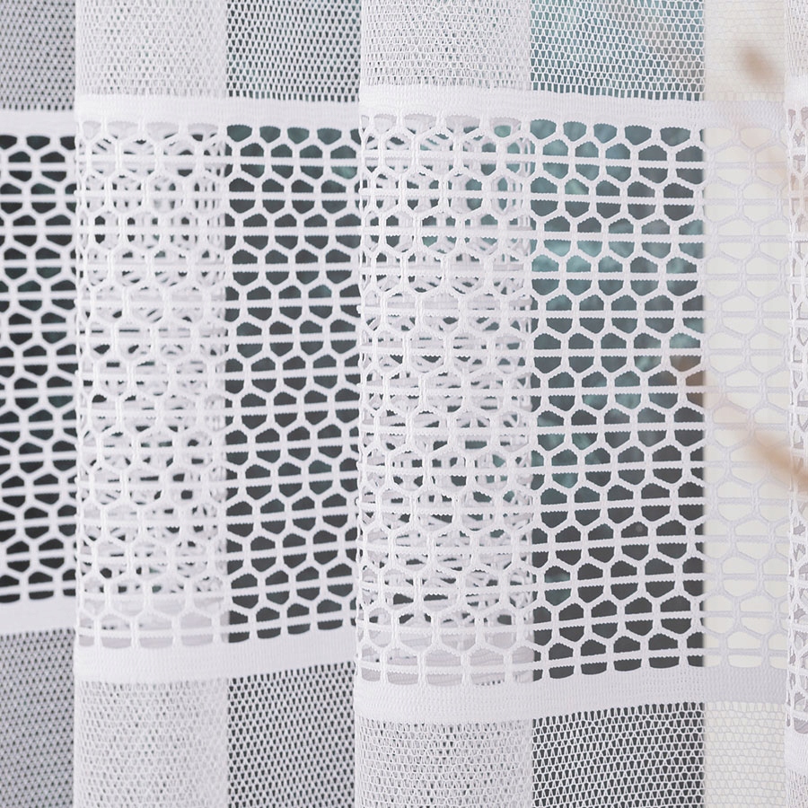 Прекрасна завіса жакарда біла, ніжна сітка з відкритими смугами, ідеально підходить для сучасних та класичних кімнат.