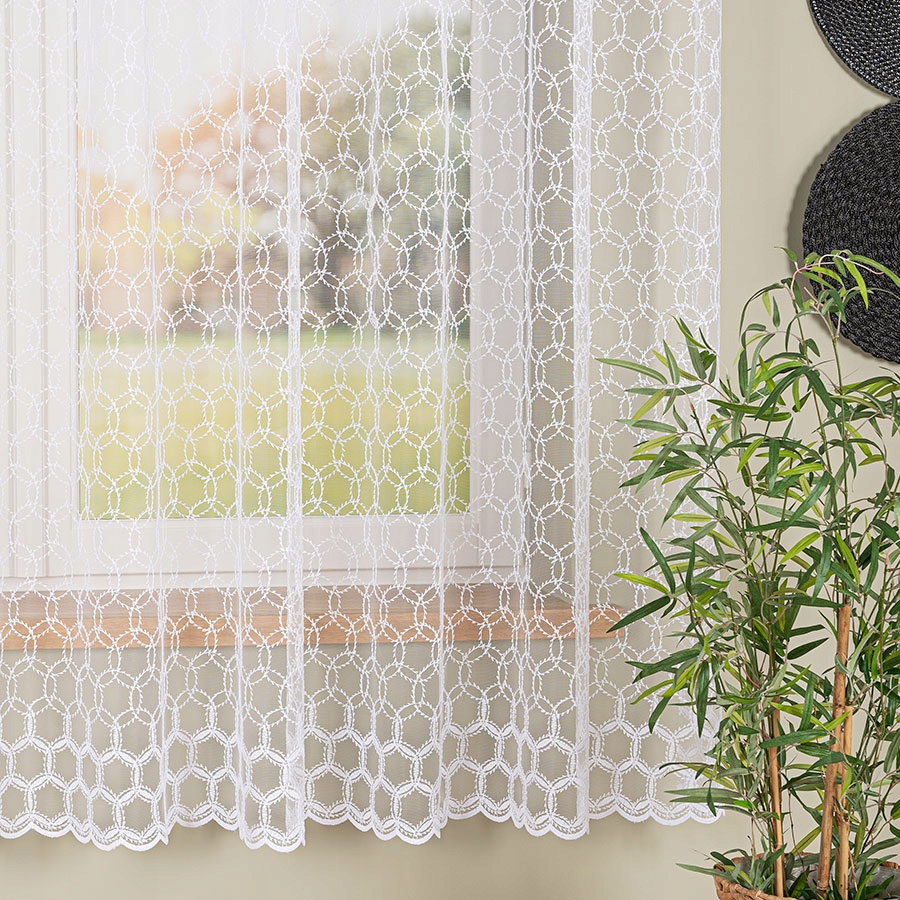 Делікатна тонка сітка майже непомітна у вікні для прекрасного, позачасового візерунка в колесі, який прикрасить будь -яку кімнату, надаючи свіжість і легкість.