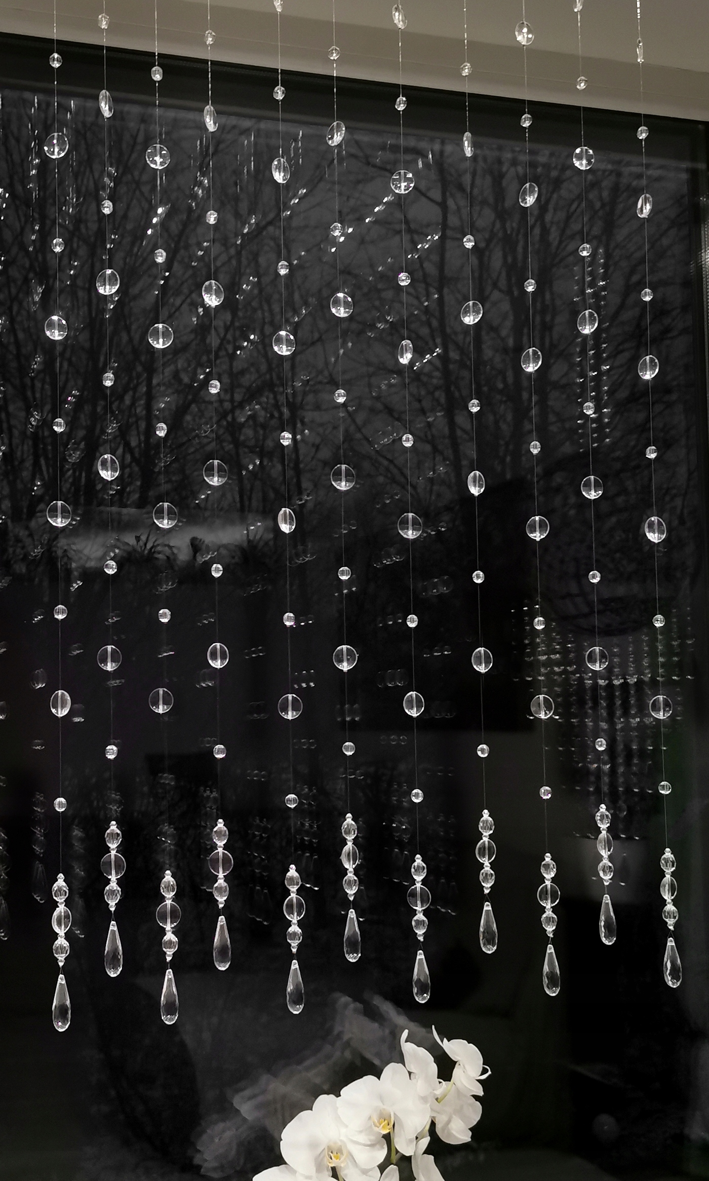 Чудово нанизані на прозору нитку кристали розсіюють світло, додаючи інтер'єру елегантності та стилю. Підвіску можна повісити на будь-який карниз завдяки петлі на її кінці.